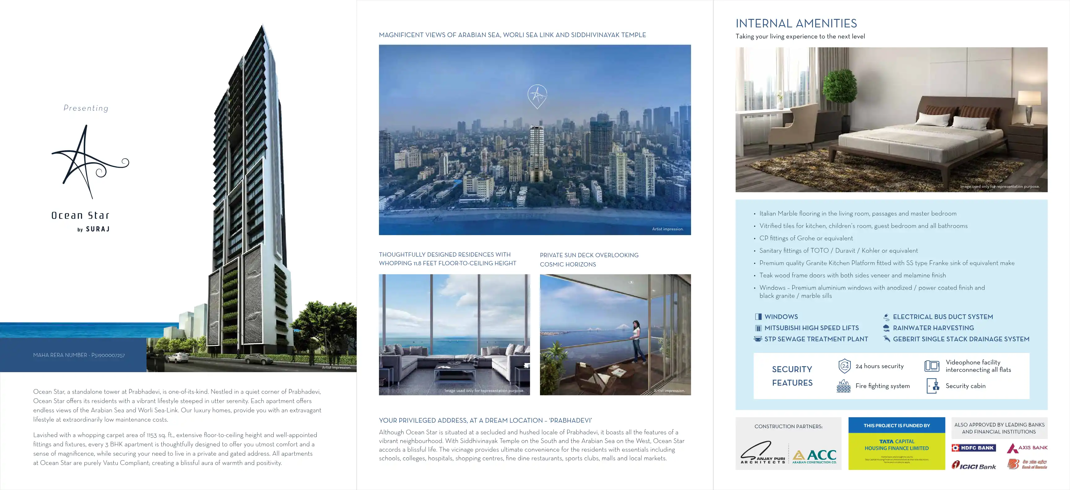 Ocean Star, a standalone tower at Prabhadevi, is one-of-its-kind. Nestled in a quiet corner of Prabhadevi, Ocean Star offers its residents with a vibrant lifestyle steeped in utter serenity. Each apartment offers endless views of the Arabian Sea and ...