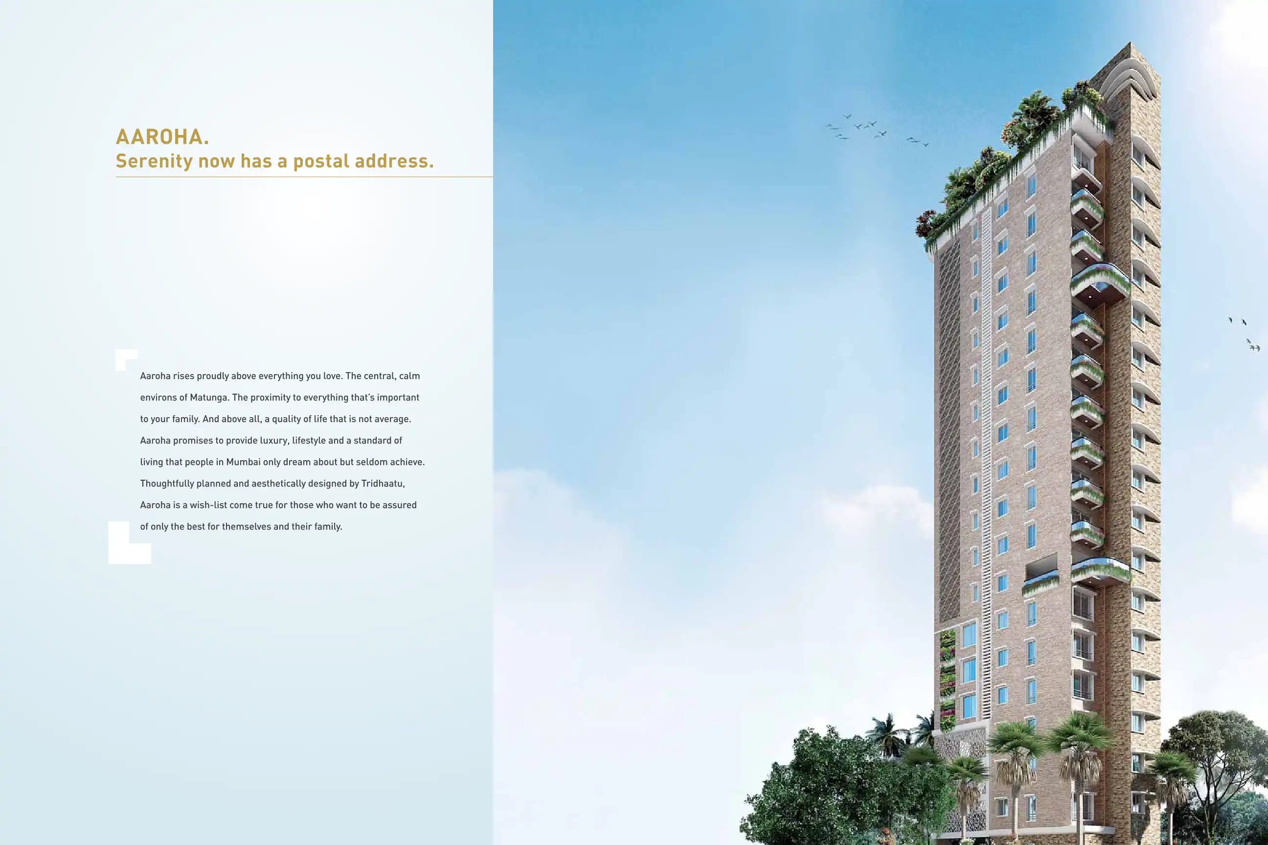 Aaroha rises proudly above everything you love. The central, calm environs of Matunga.