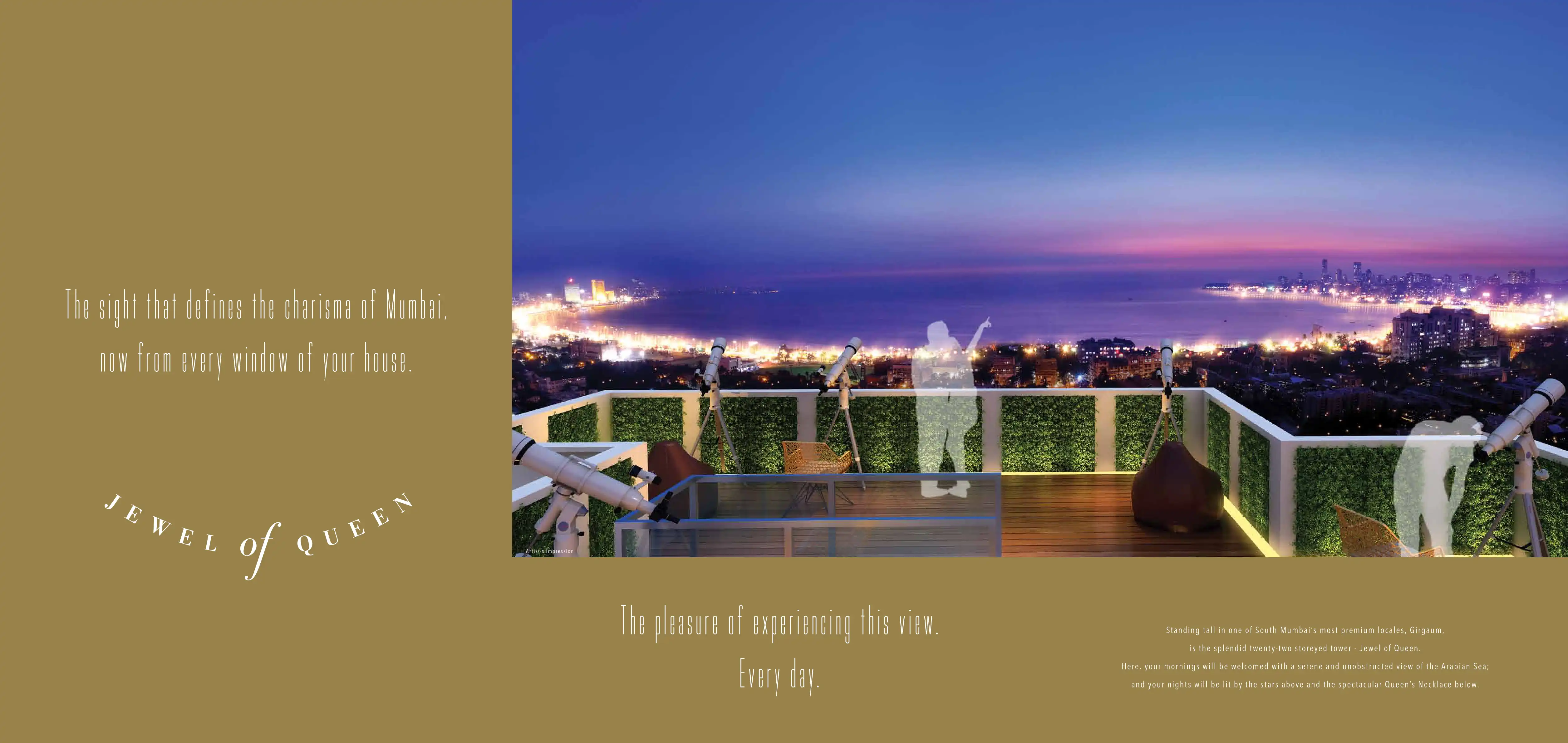 Standing tall in one of South Mumbai's most premium locales, Girgaum, is the splendid twenty-two storeyed tower - Jewel of Queen.