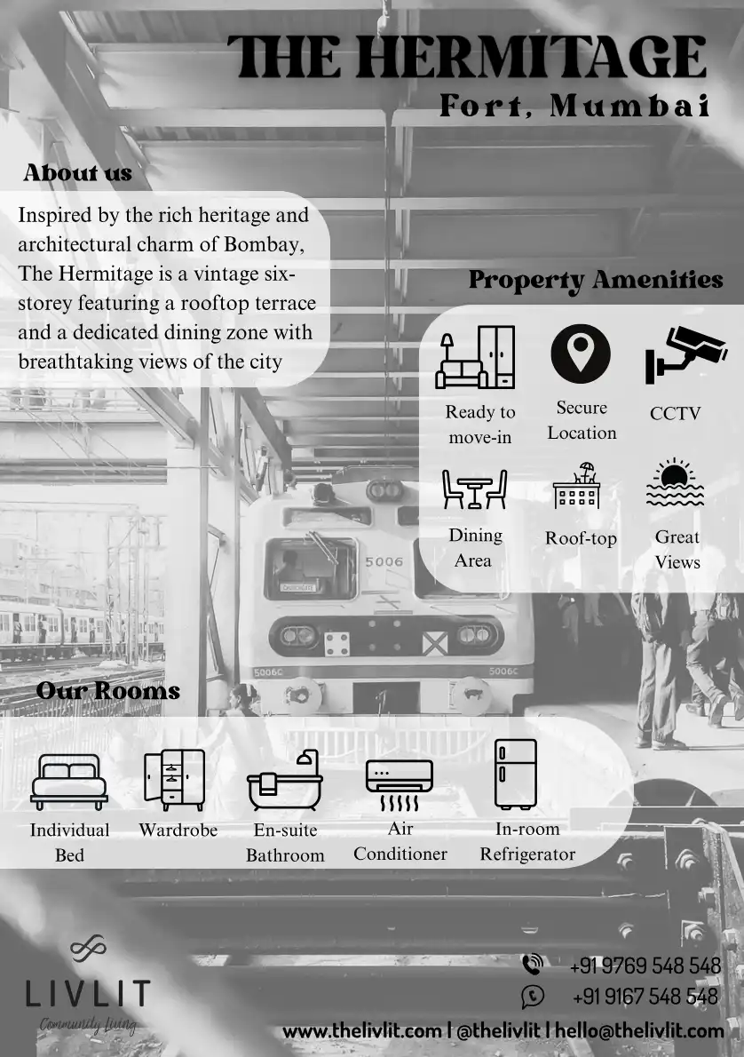 The Hermitage is a vintage six-storey featuring a rooftop terrace and a dedicated dining zone with breathtaking views of the city. Inspired by the rich heritage and architectural charm of Bombay.