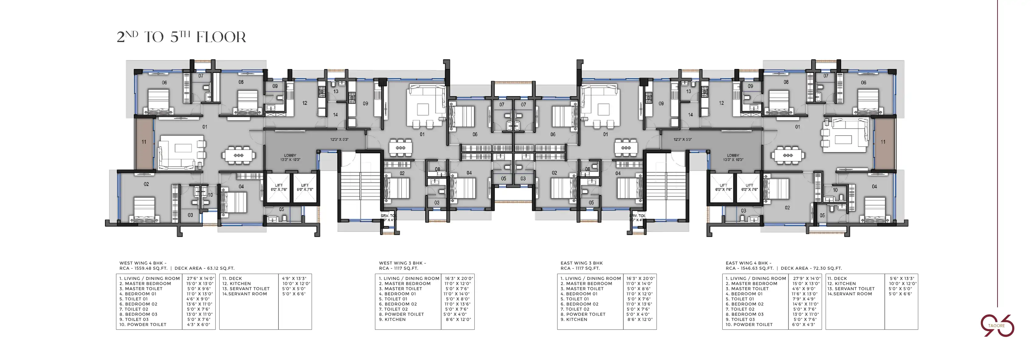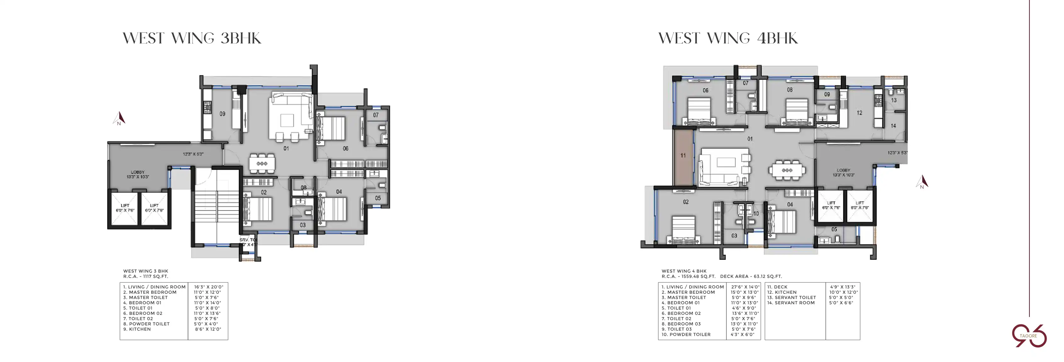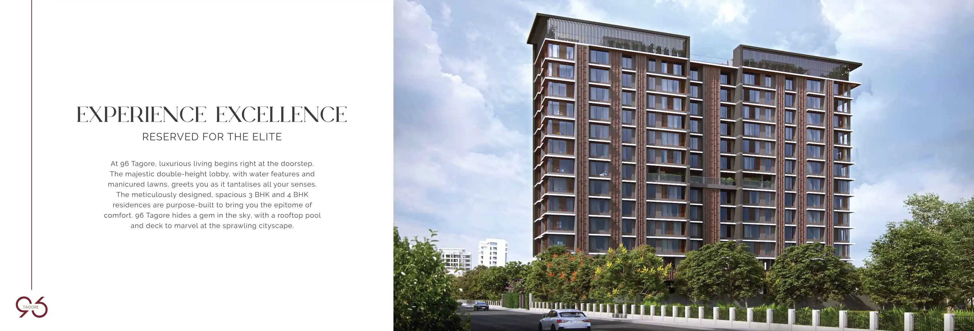 At 96 Tagore, luxurious living begins right at the doorstep. The majestic double-height lobby, with water features and manicured lawns, greets you as it tantalises all your senses. The meticulously designed, spacious 3 BHK and 4 BHK residences are pu...