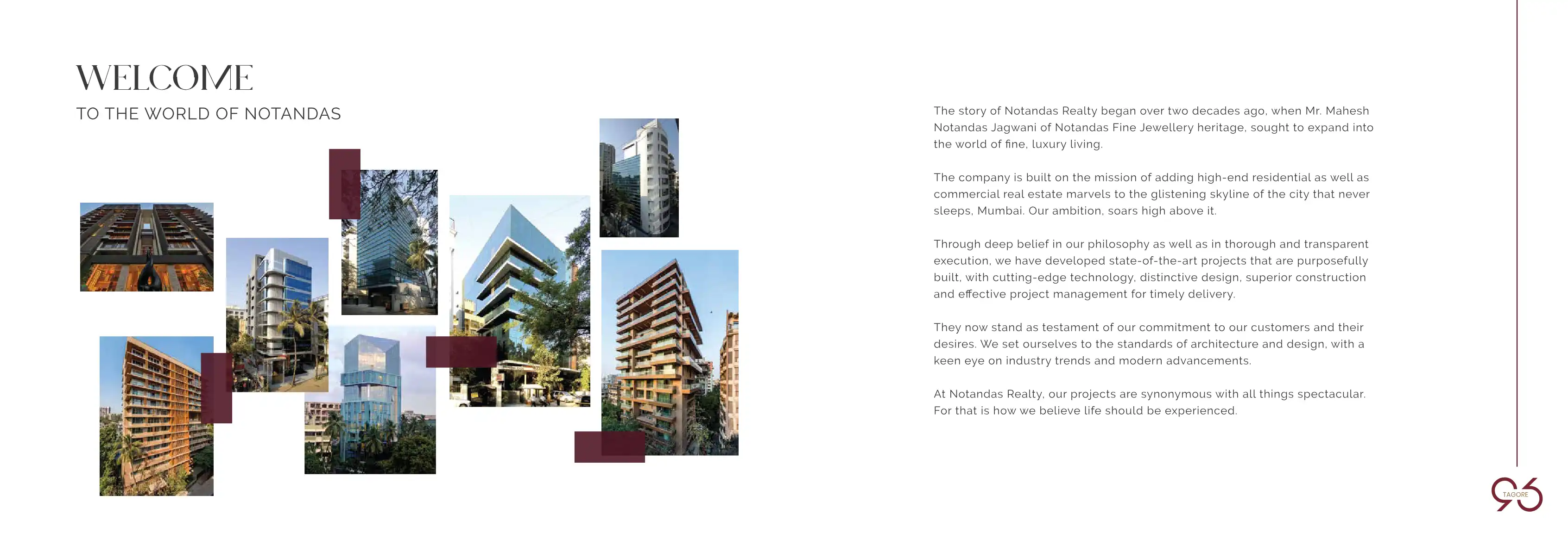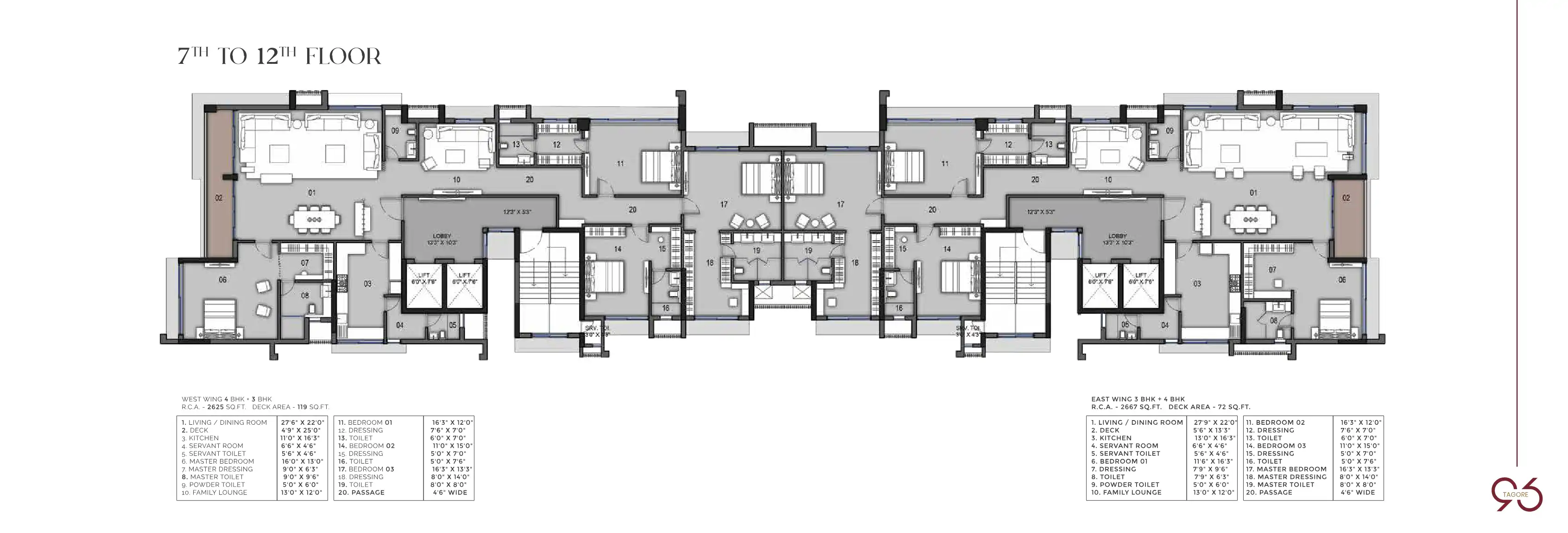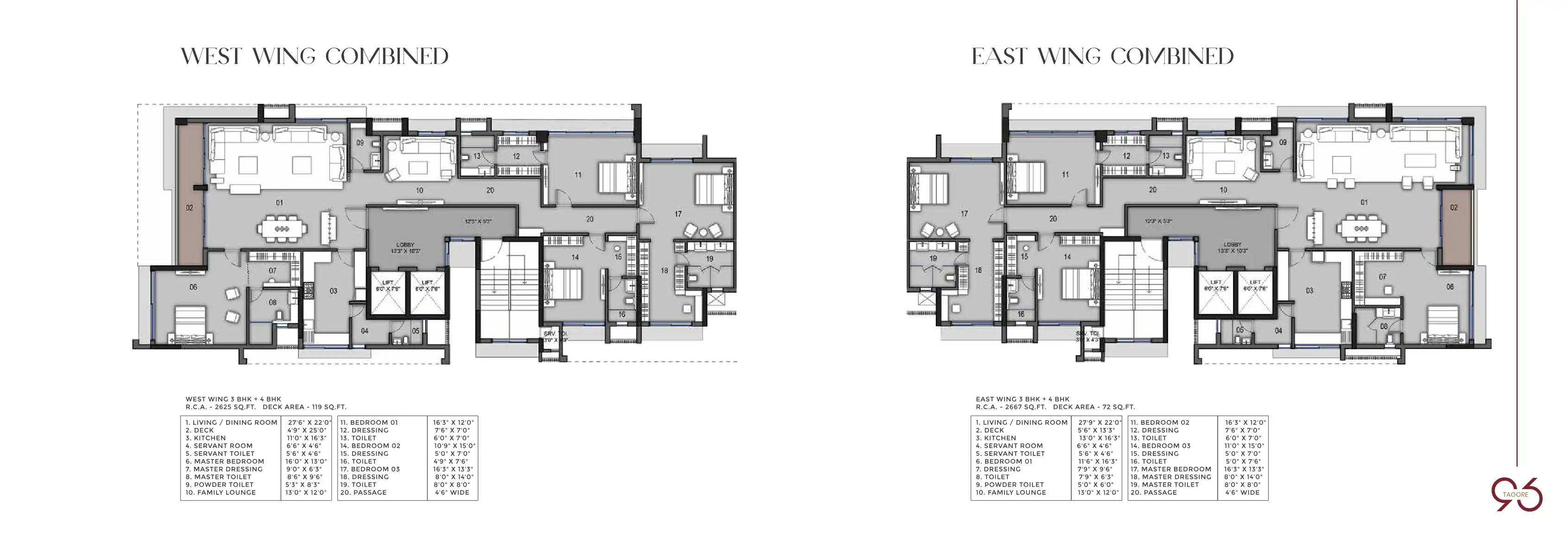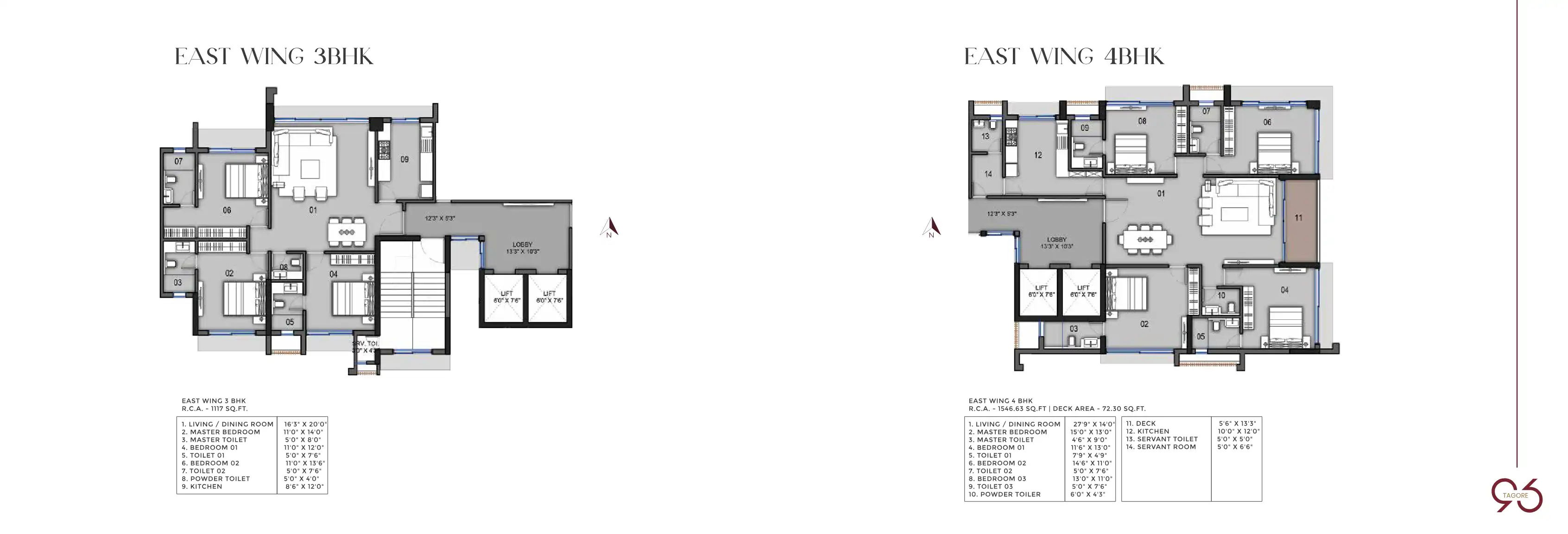 At 96 Tagore, luxurious living begins right at the doorstep. The majestic double-height lobby, with water features and manicured lawns, greets you as it tantalises all your senses. The meticulously designed, spacious 3 BHK and 4 BHK residences are pu...
