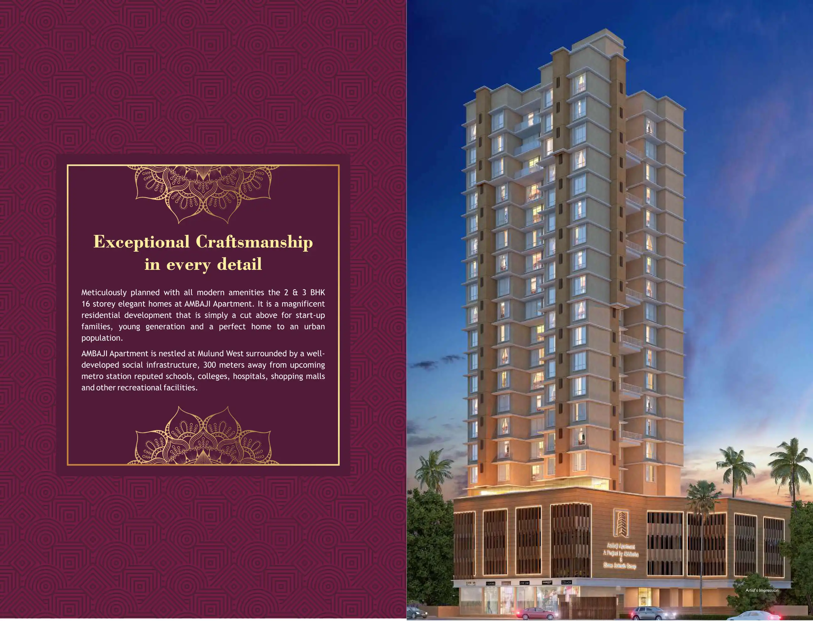 Meticulously planned with all modern amenities the 2 & 3 BHK 16 storey elegant homes at AMBAJI Apartment. It is a magnificent residential development that is simply a cut above for start-up families, young generation and a perfect home to an urban po...
