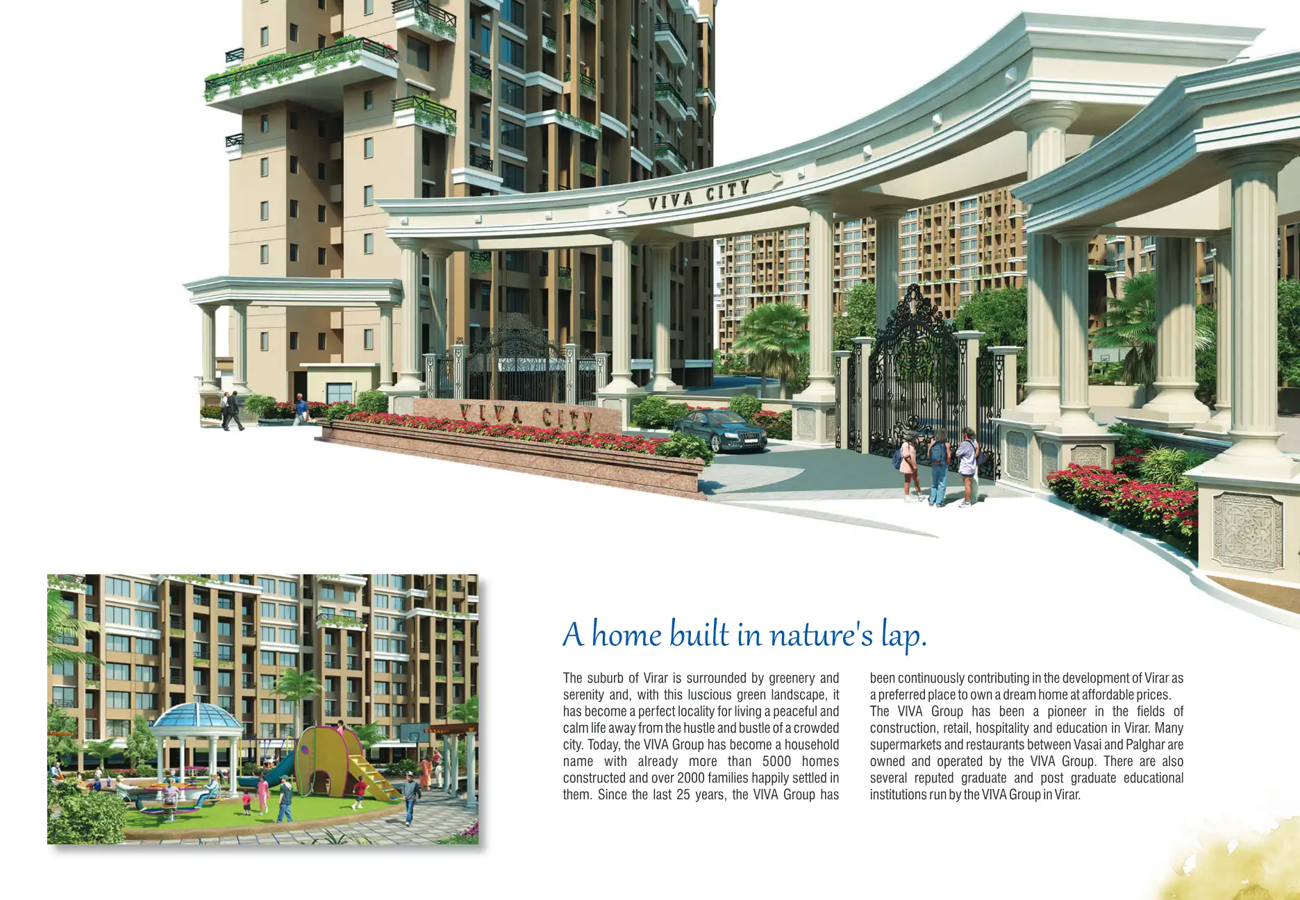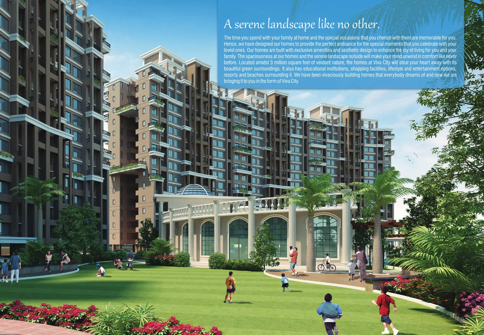 Viva City is located amidst 3 million square feet of verdant nature and educational institutions, shopping facilities, lifestyle and entertainment options, resorts and beaches surrounding it.