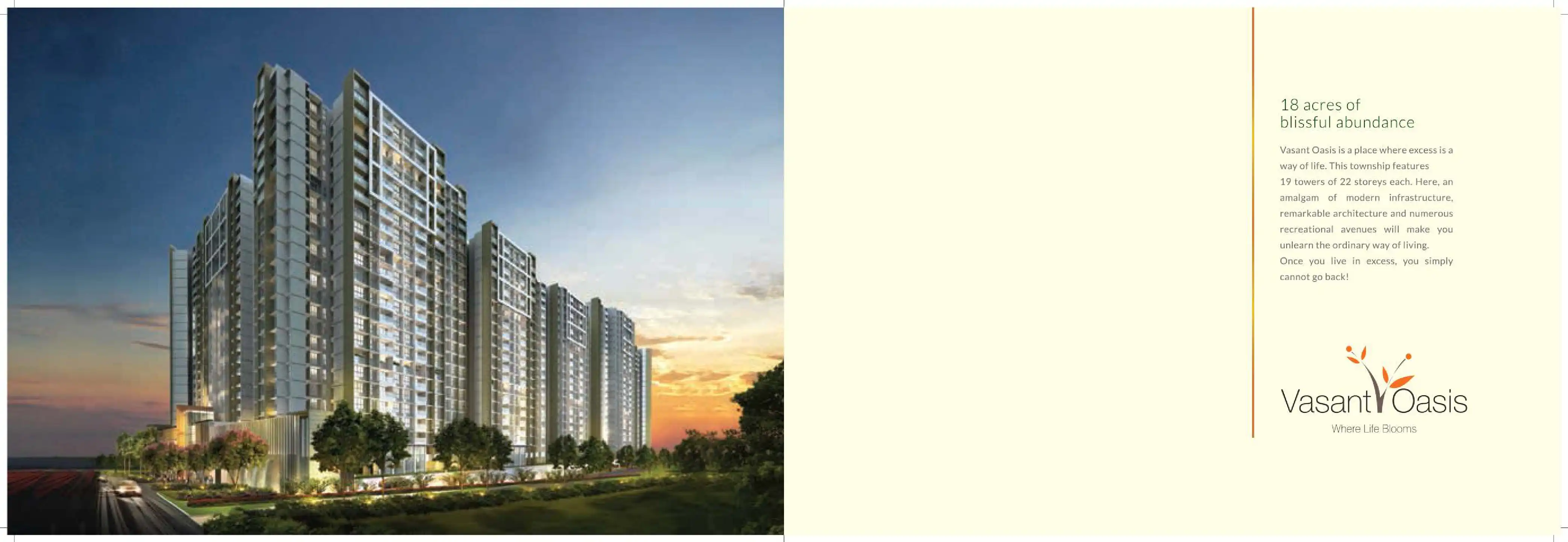 Vasant Oasis is a place where excess is a way of life. This township features 19 towers of 22 storeys each. Here, an amalgam of modern infrastructure, remarkable architecture and numerous recreational avenues will make you unlearn the ordinary way of...