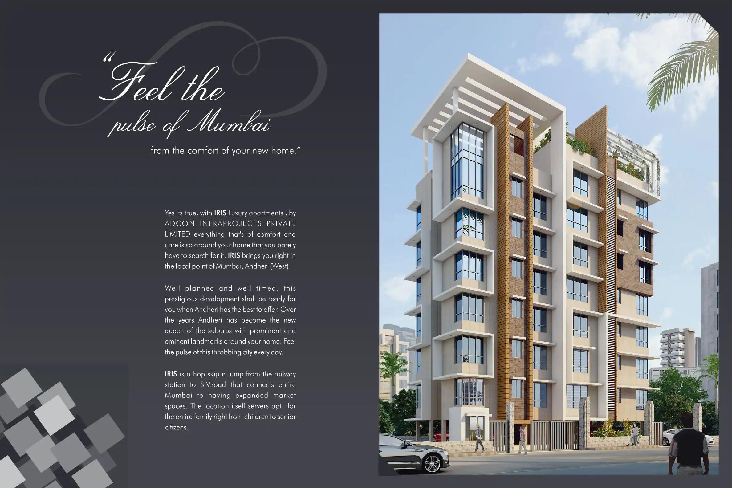 IRIS brings you right in the focal point of Mumbai, Andheri (West).IRIS is a hop skip n jump from the railway station to S.V.road that connects entire Mumbai to having expanded market spaces.