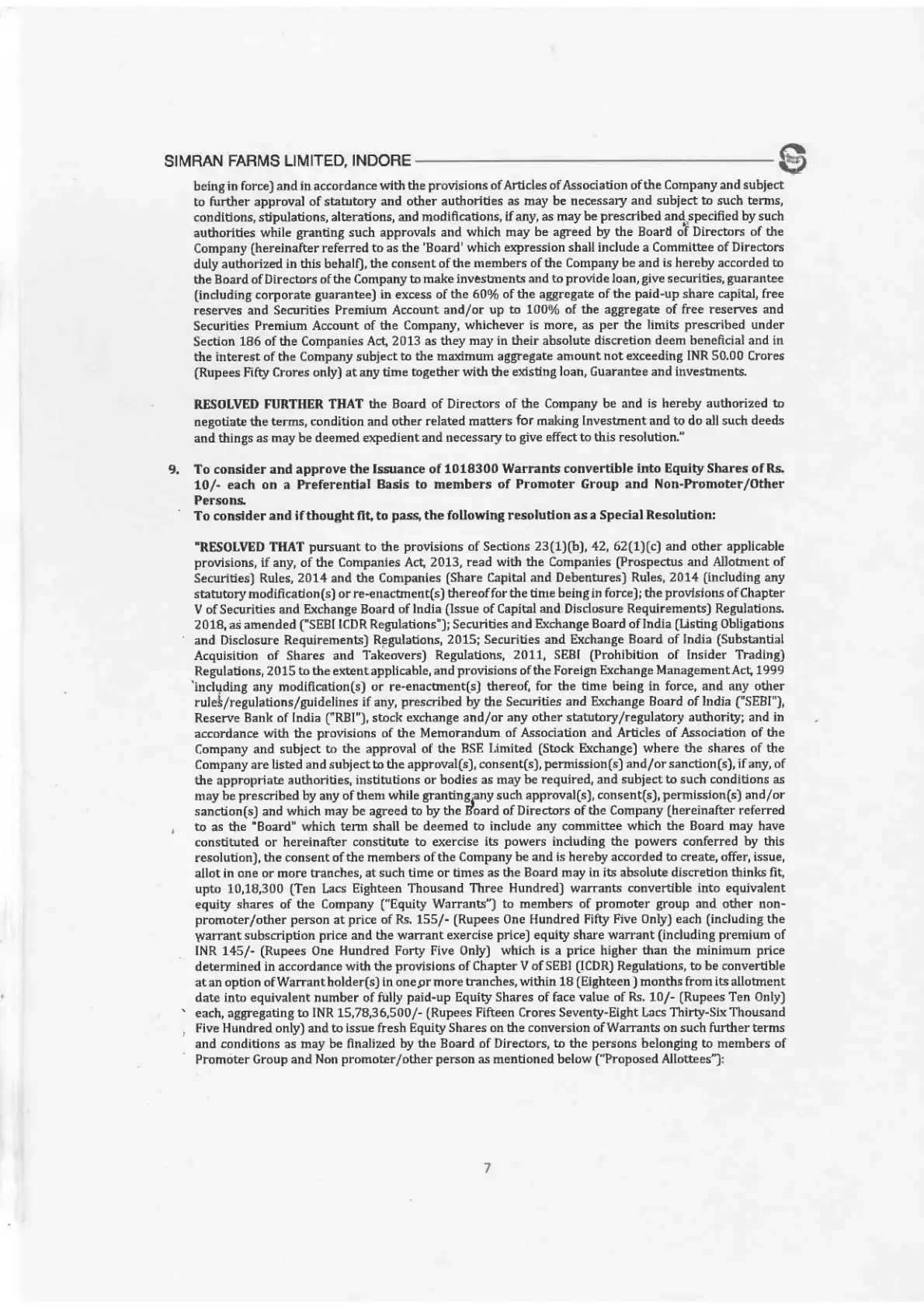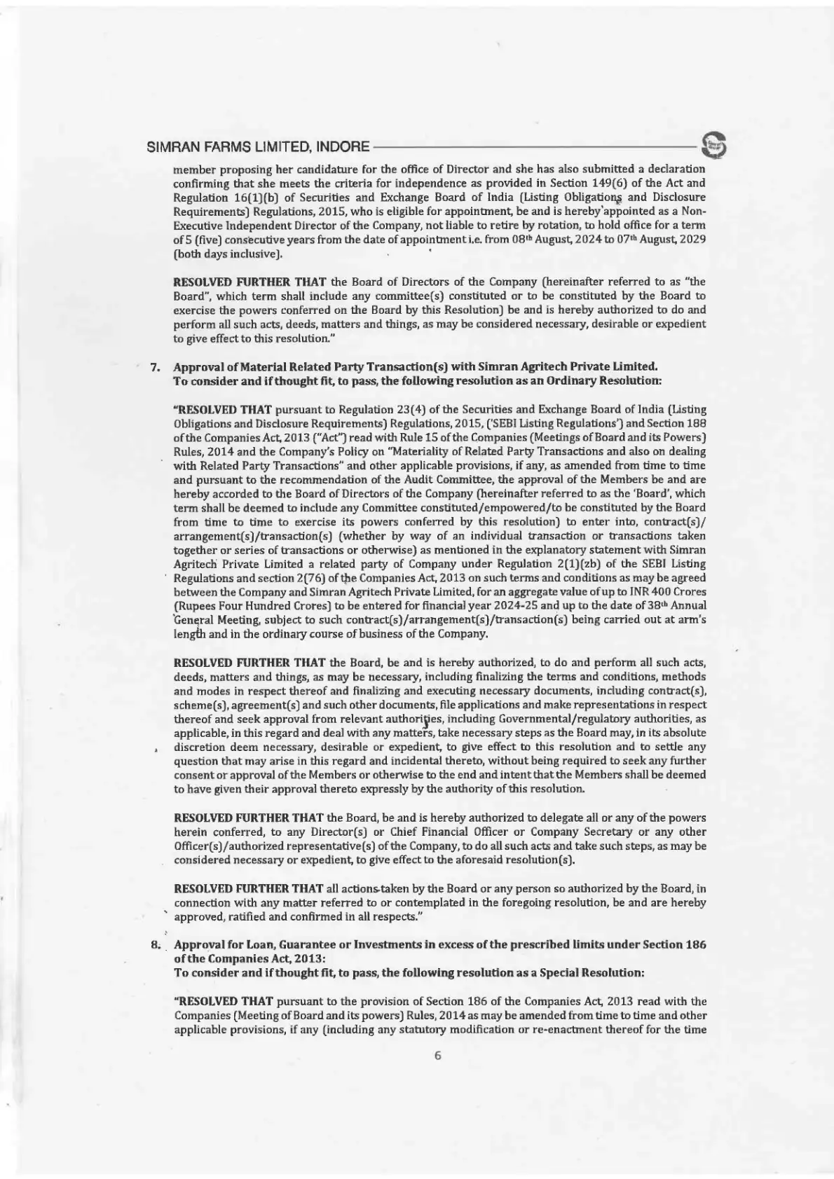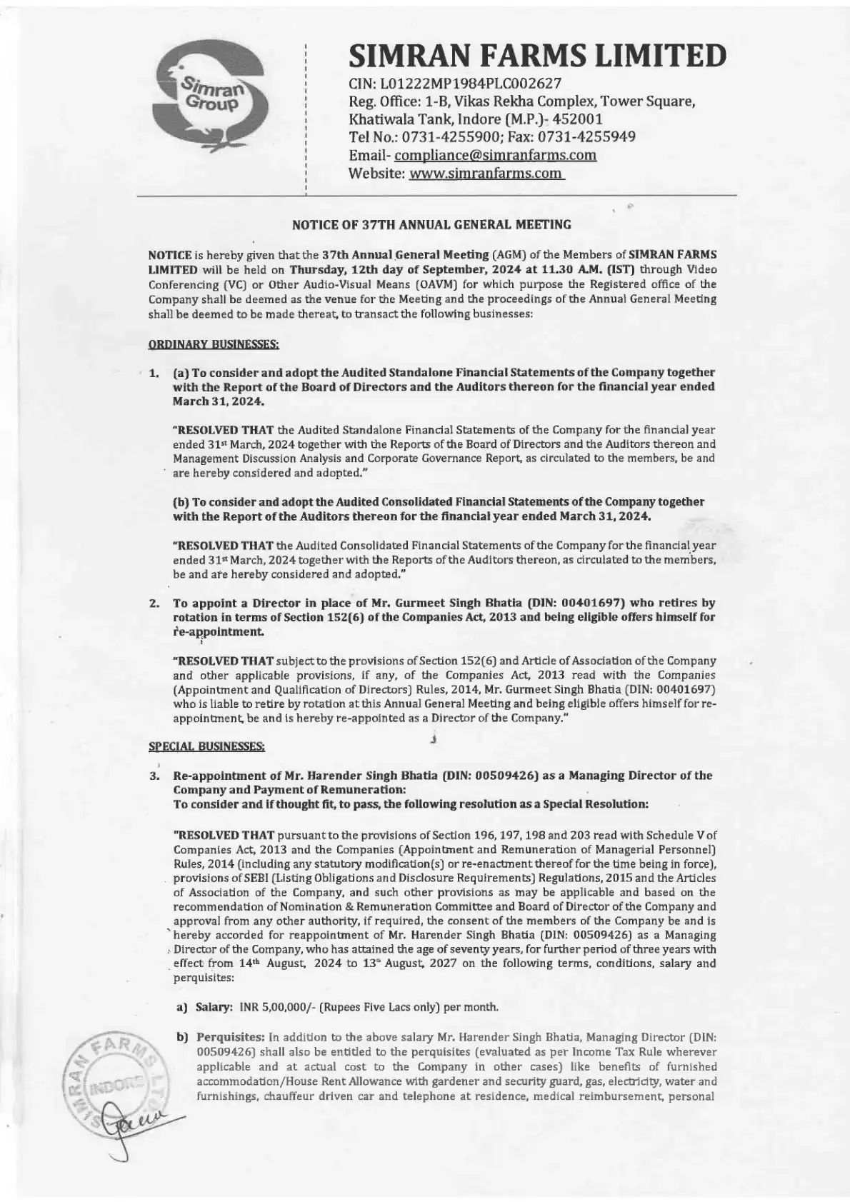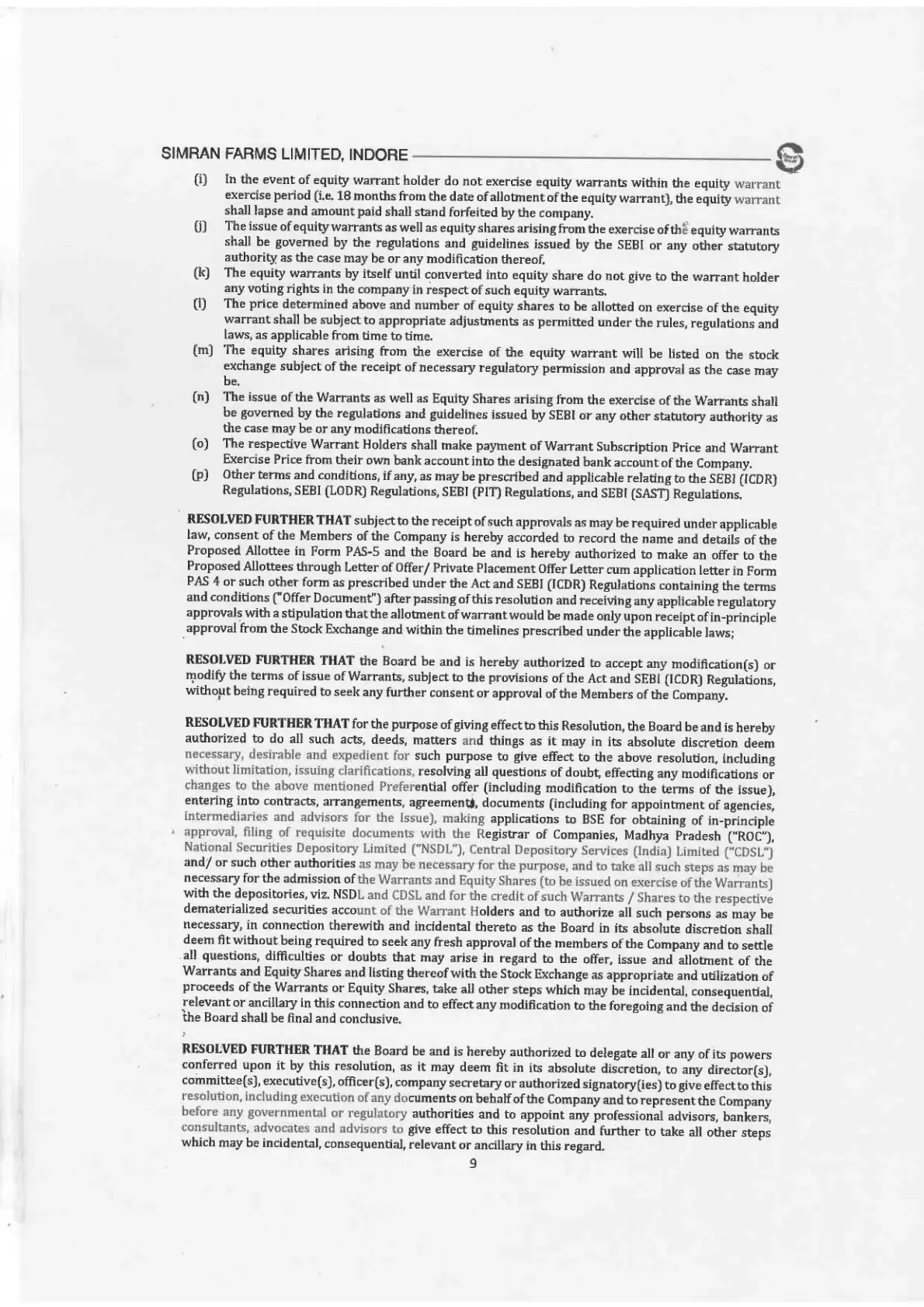 by SIMRAN FARMS LIMITED
