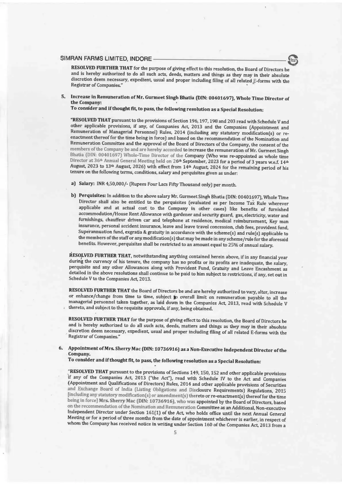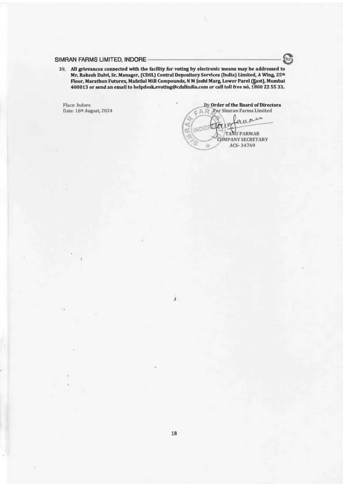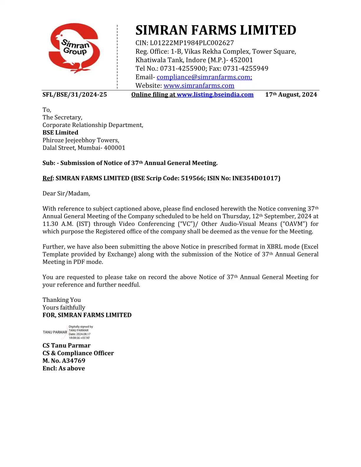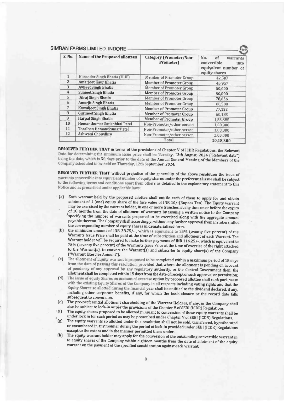 by SIMRAN FARMS LIMITED