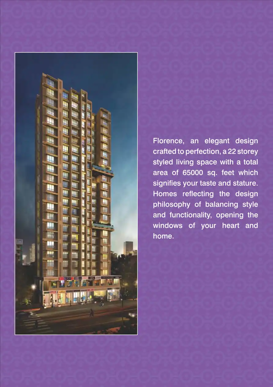 Florence, an elegant design crafted to perfection, a 22 storey styled living space with a total area of 65000 sq. feet which signifies your taste and stature. Homes reflecting the design philosophy of balancing style and functionality, opening the wi...