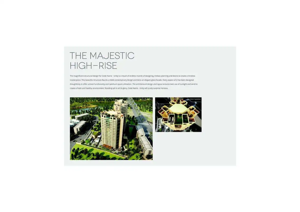Spread across massive 1.65 acres land, the biggest in Versova A serene locality with panoramic view of sea and mangroves Beautifully Landscaped Open Spaces at Ground Level