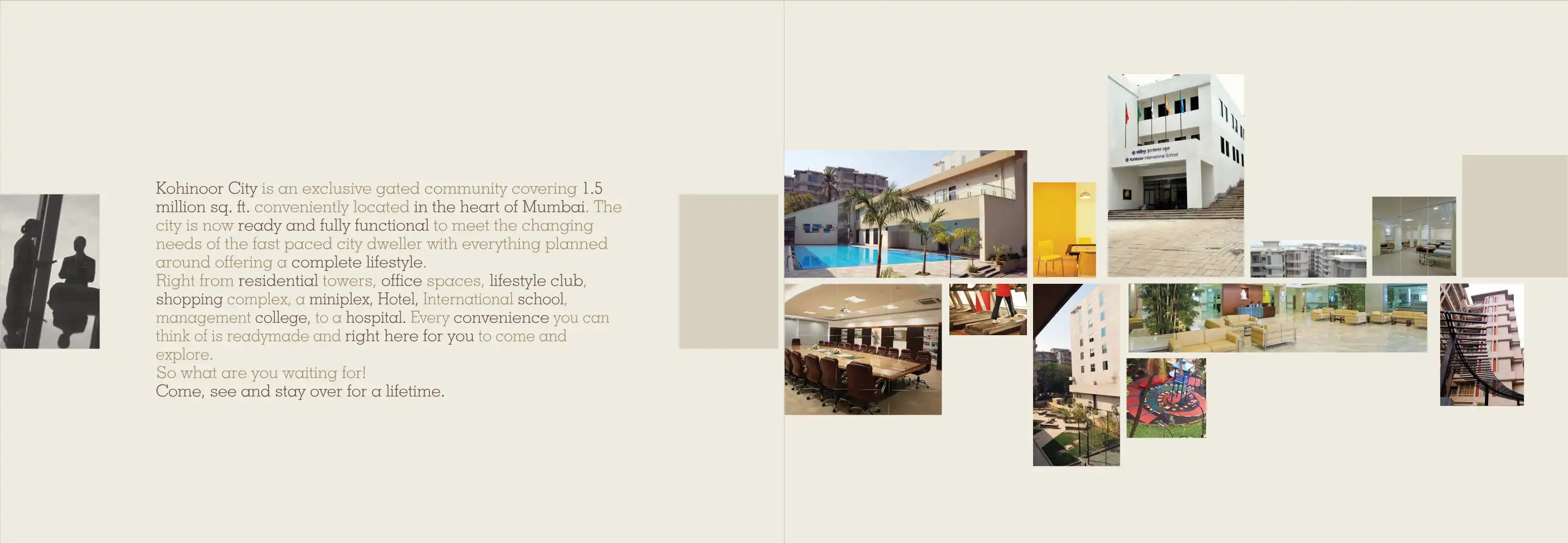 Kohinoor City is an exclusive gated community covering 1.5 million sq. ft. conveniently located in the heart of Mumbai. The city is now ready and fully functional to meet the changing needs of the fast paced city dweller with everything planned aroun...
