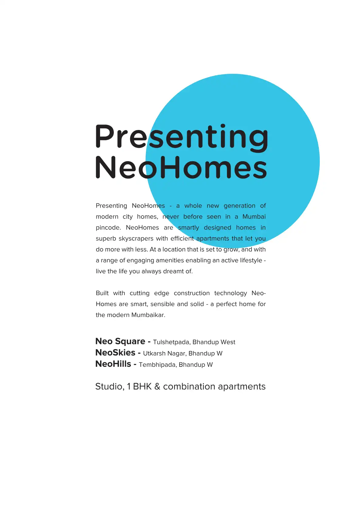 Presenting NeoHomes a whole new generation of modern city homes, never before seen in a Mumbai pincode. NeoHomes are smartly designed homes in superb skyscrapers with efficient apartments that let you do more with less. At a location that is set to g...