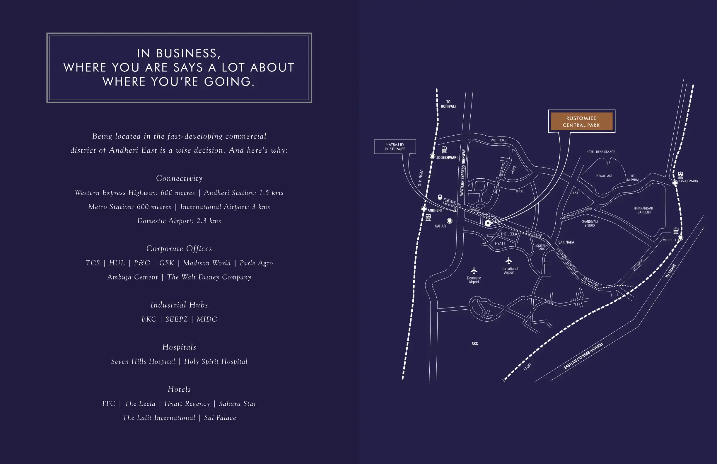 Yes, the region is home to several significant commercial developments. Projects like Rustomjee Central Park by Rustomjee and Lodha Supremus - Andheri by LODHA offer premium office spaces with modern amenities, attracting major corporations and businesses. Sunteck Crest also provides commercial spaces, further enhancing the area's appeal as a business destination.