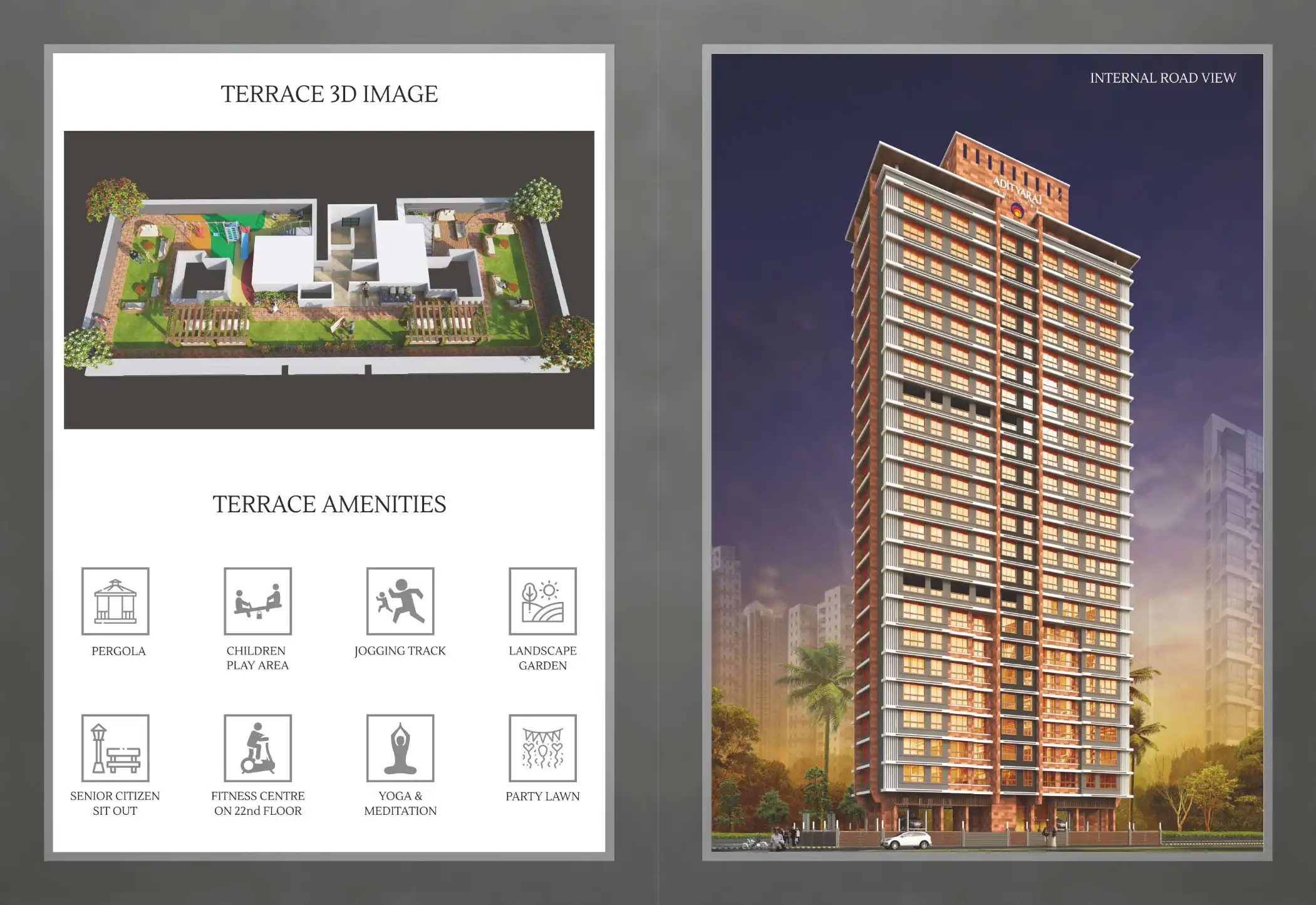 This 22 -Storey edifice conceived in the prime locality of Vikhroli, offers magnificent views of City, Creek & Lush Green Mangrove. Adityraj Avenue is offering 2 & 3BHK residences for high class living.