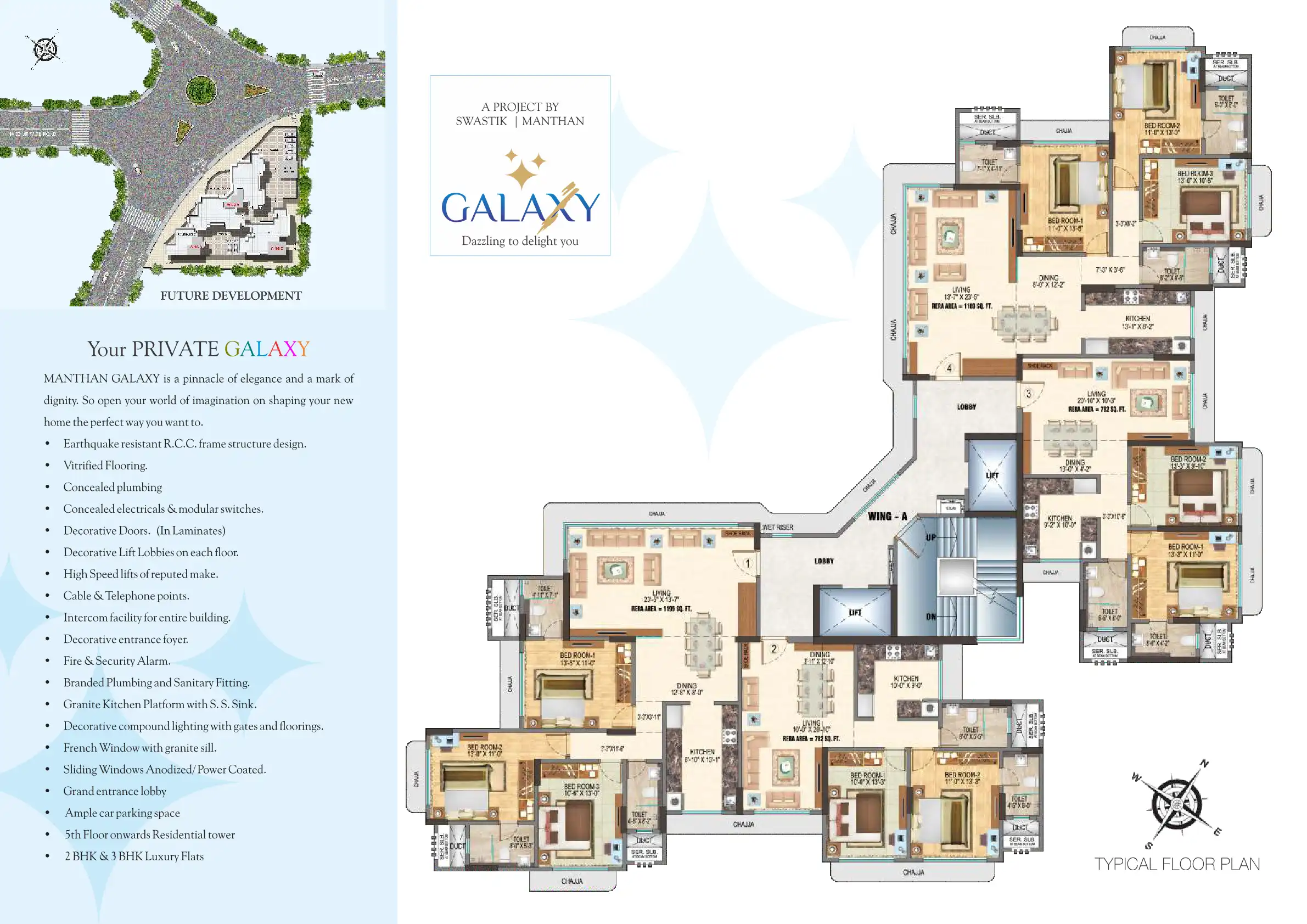 MANTHAN GALAXY is a pinnacle of elegance and a mark of dignity. So open your world of imagination on shaping your new home the perfect way you want to.