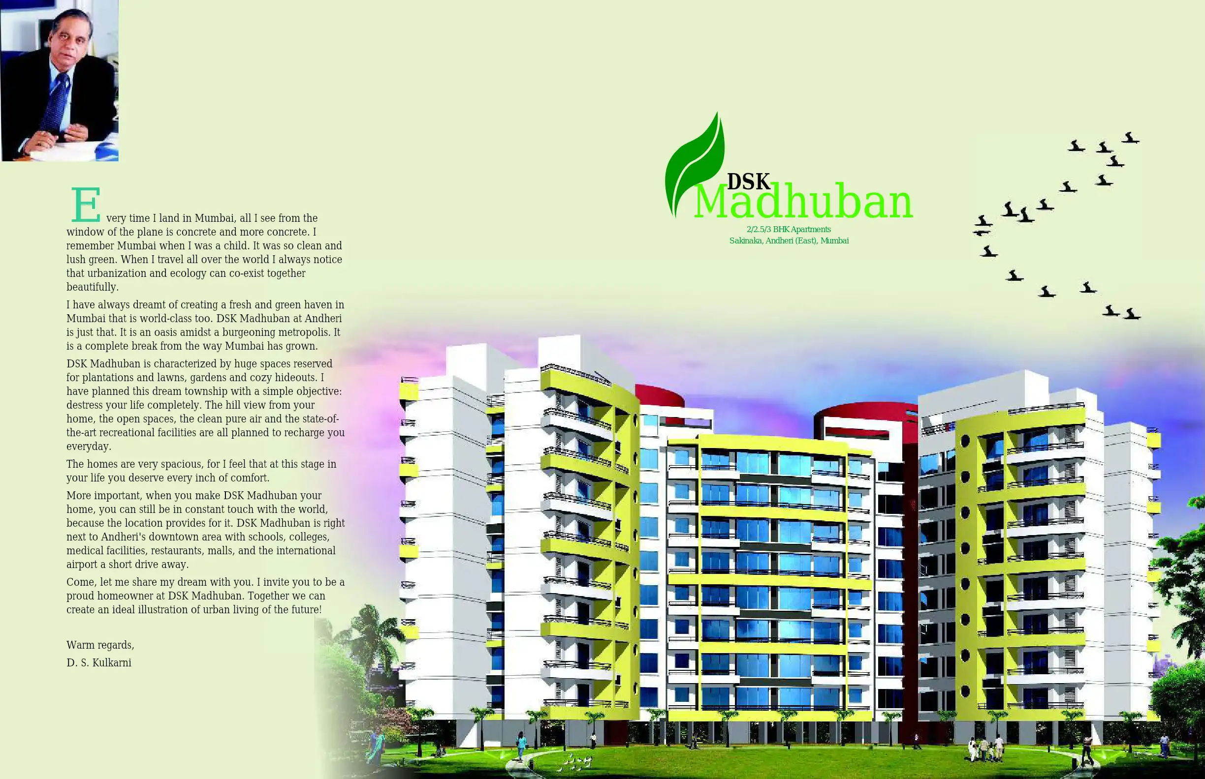 DSK Madhuban is characterized by huge spaces reserved for plantations and lawns, gardens and cozy hideouts. I have planned this dream township with a simple objective: destress your life completely. The hill view from your home, the open spaces, the ...