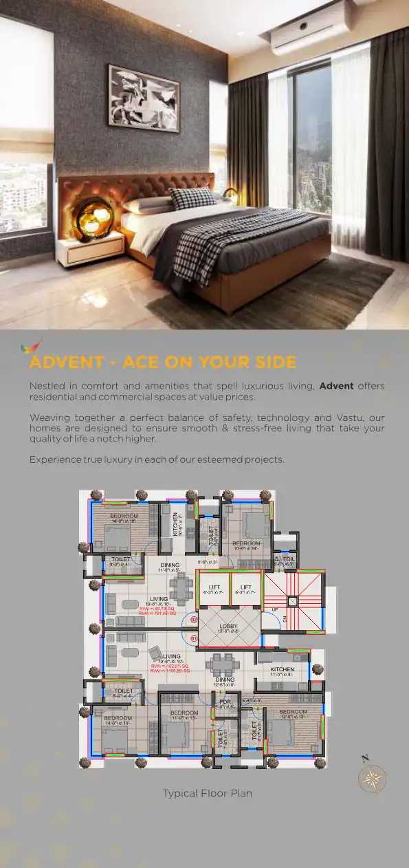 An 11-storey tower, comprising 2BHK and 3BHK homes, that stands amidst lush greens and is a true joy to call your own!
