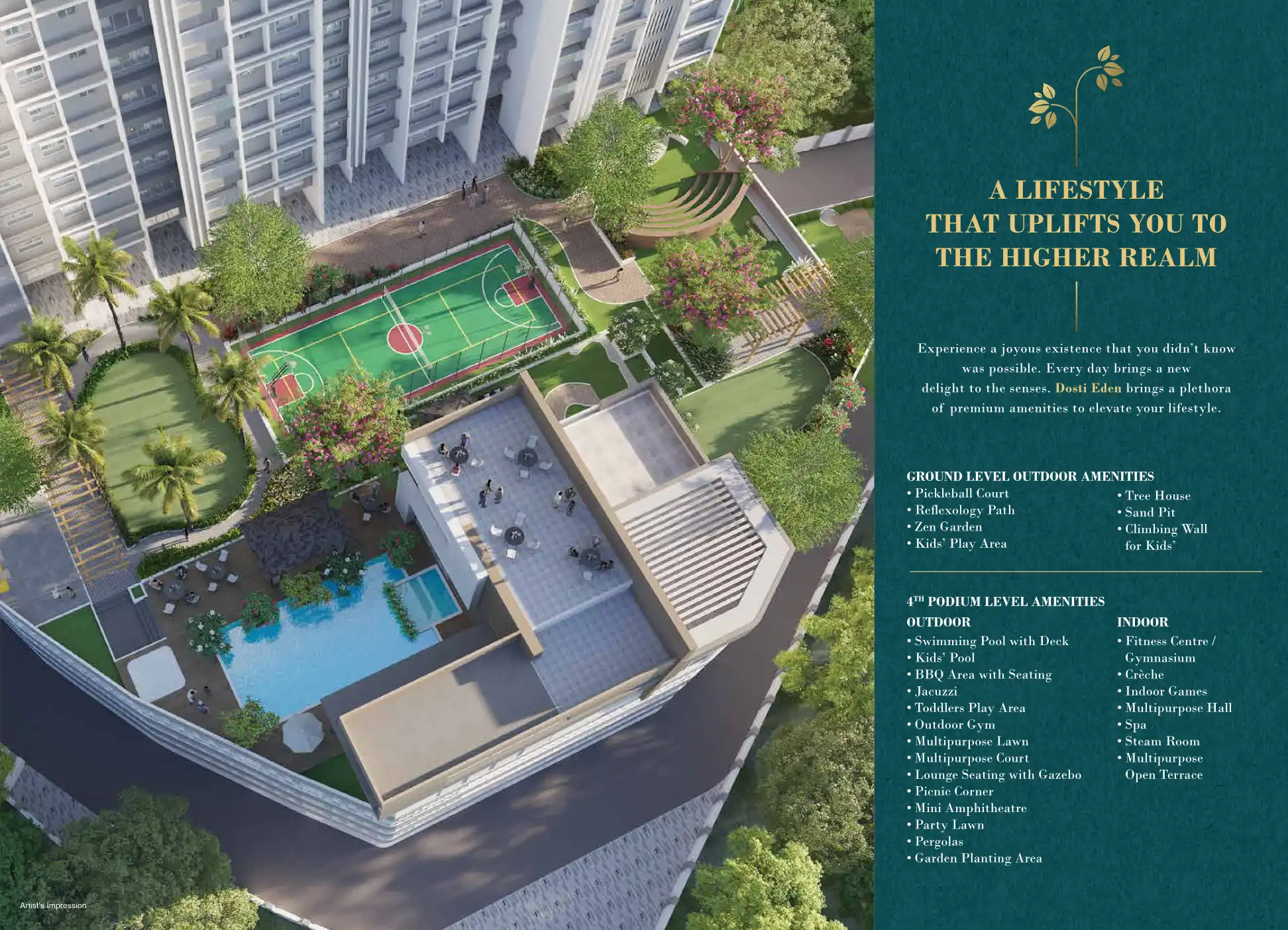 Dosti Eden is a new project by Dosti Realty at Dosti Desire, Thane. The project offers a range of amenities including a swimming pool, kids' play area, Gymnasium and multipurpose hall.