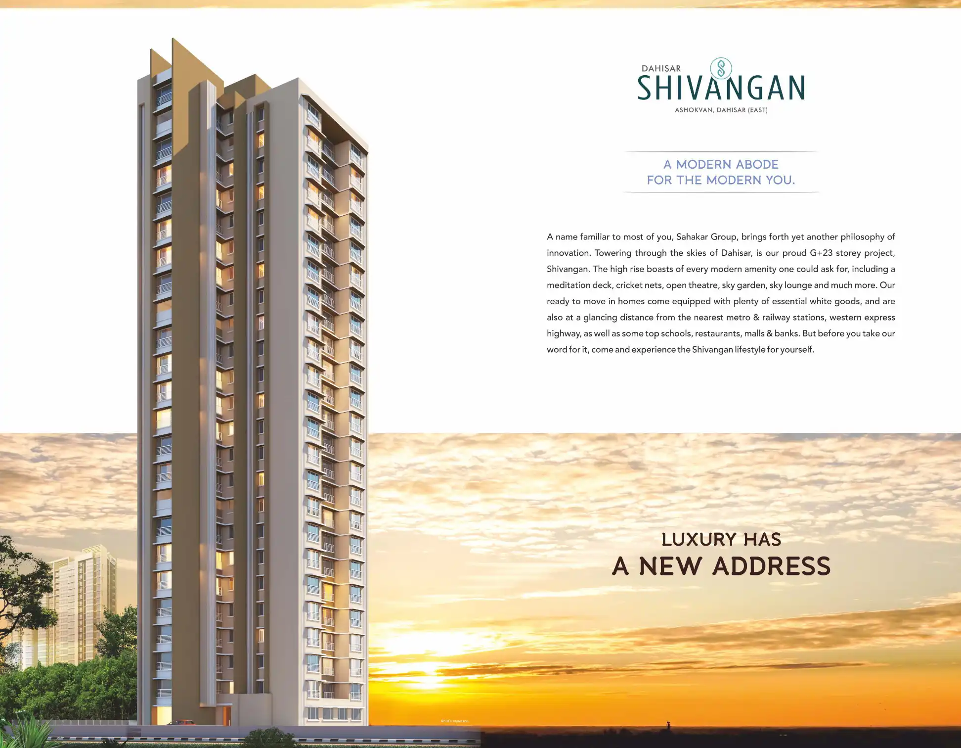 Shivangan has been carefully conceptualised and designed for the urban resident. With a rooftop full of amenities straight out of a 5-star resort & pre-equipped white goods in every flat, it is the closest we have come to personifying luxury & elegan...