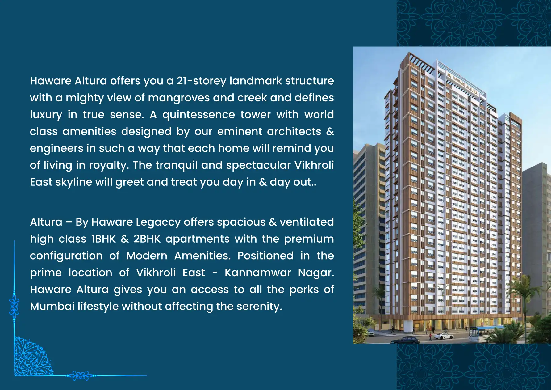 Haware Altura offers you a 21-storey landmark structure with a mighty view of mangroves and creek and defines luxury in true sense. A quintessence tower with world class amenities designed by our eminent architects & engineers in such a way that each...