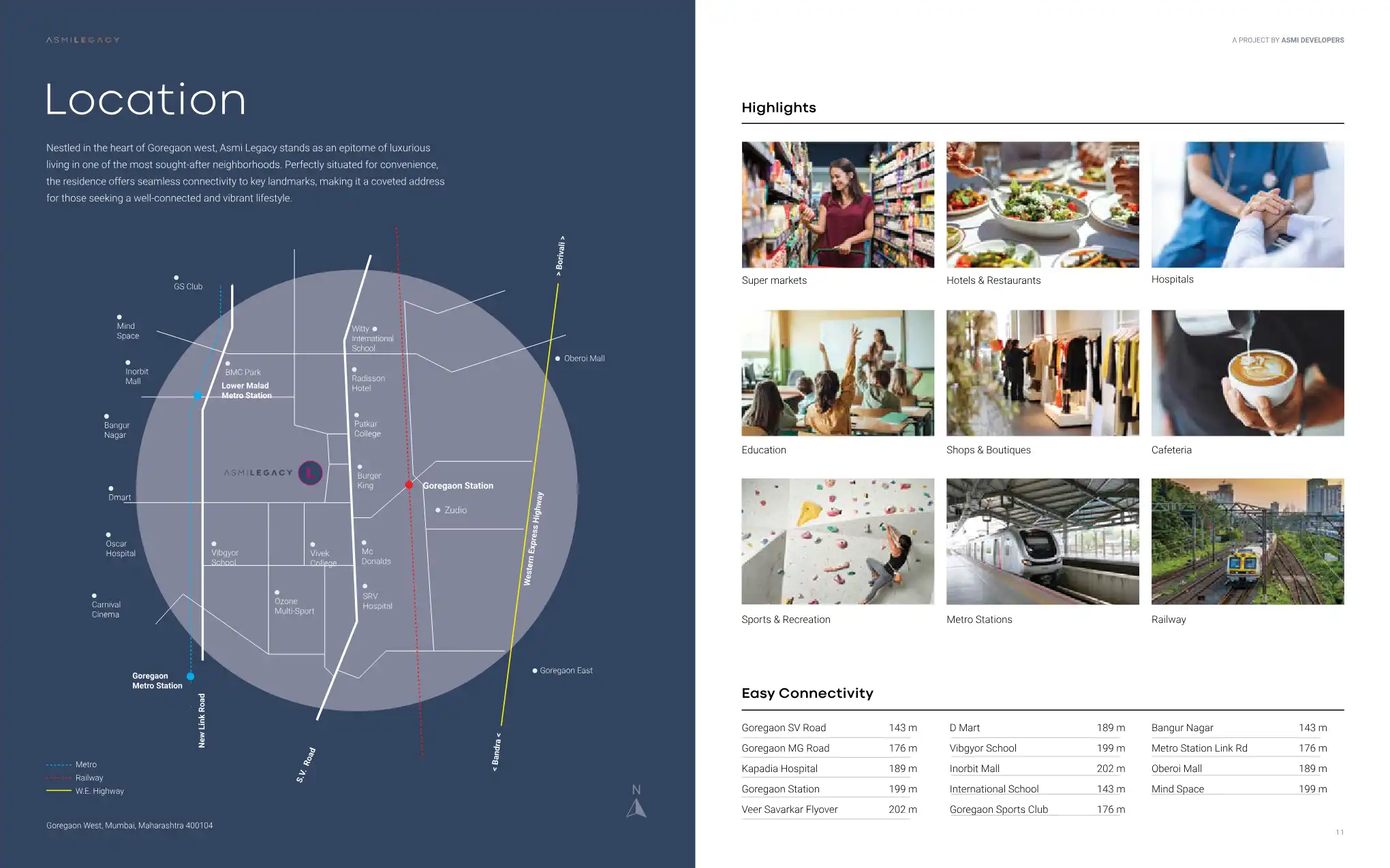 Goregaon West boasts excellent connectivity. It's well-served by the Western Express Highway and the Western Railway line, with Goregaon and Ram Mandir railway stations providing easy access. The area also benefits from the Mumbai Metro's Yellow Line, with Aarey Metro Station nearby, and a robust network of BEST buses, ensuring seamless travel across Mumbai and to nearby areas like Oshiwara and Lower Malad.