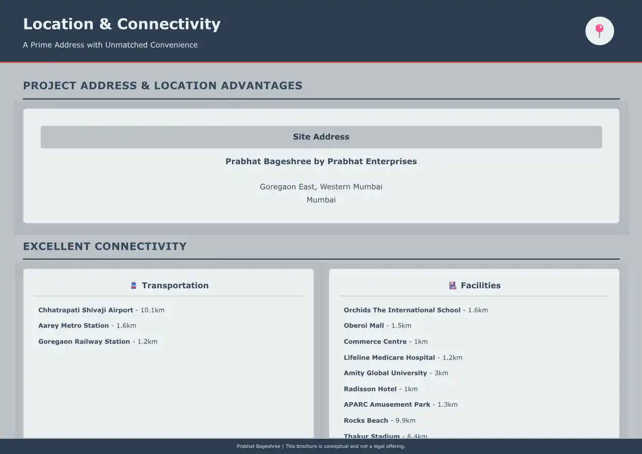 Goregaon offers a vibrant and balanced lifestyle, blending residential comfort with urban conveniences. It features numerous shopping malls like Oberoi Mall, reputable educational institutions such as St. John's Universal School and Oberoi International School, and comprehensive healthcare facilities like ESIS Hospital. The presence of IT parks also makes it a preferred location for professionals, contributing to a dynamic community.