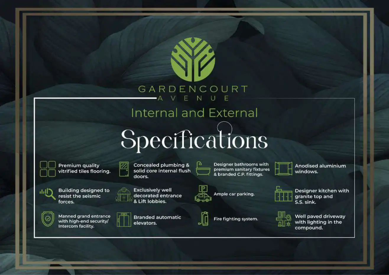 Internal and External Specifications: Premium quality vitrified tiles flooring. Building designed to resist the seismic forces. Manned grand entrance with high-end security/ Intercom facility. Concealed plumbing & solid core internal flush doors. Exc...