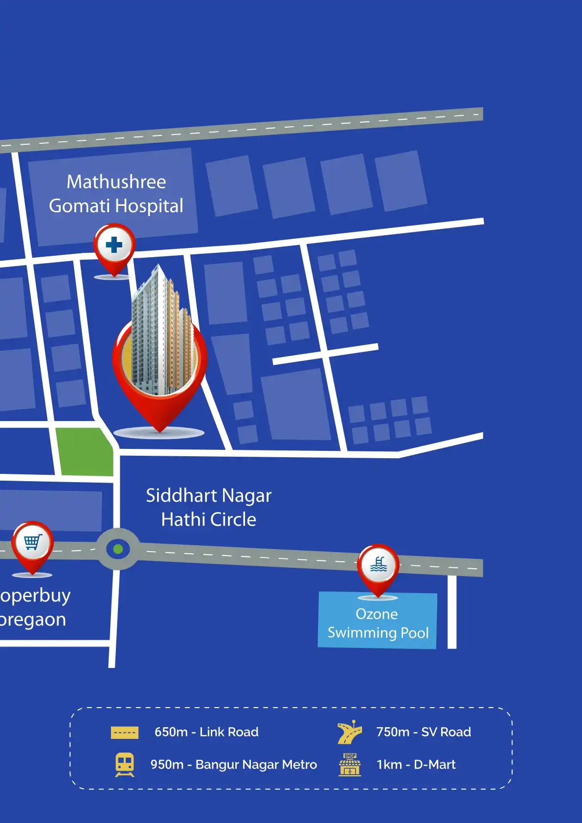 Goregaon West boasts excellent connectivity. It's well-served by the Western Express Highway and the Western Railway line, with Goregaon and Ram Mandir railway stations providing easy access. The area also benefits from the Mumbai Metro's Yellow Line, with Aarey Metro Station nearby, and a robust network of BEST buses, ensuring seamless travel across Mumbai and to nearby areas like Oshiwara and Lower Malad.