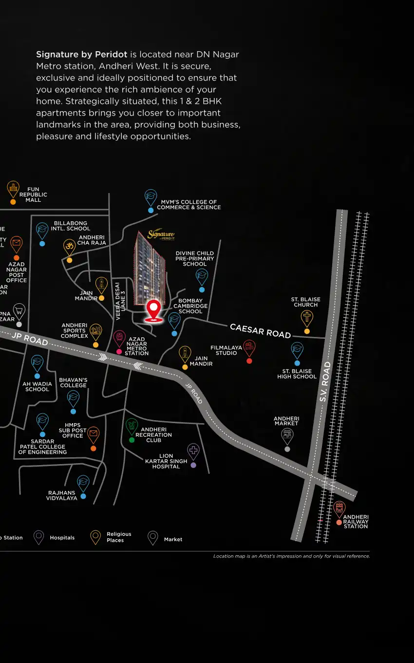 Signature by Peridot is located near DN Nagar Metro station, Andheri West. It is secure, exclusive and ideally positioned to ensure that you experience the rich ambience of your home. Strategically situated, this 1 & 2 BHK apartments brings you close...