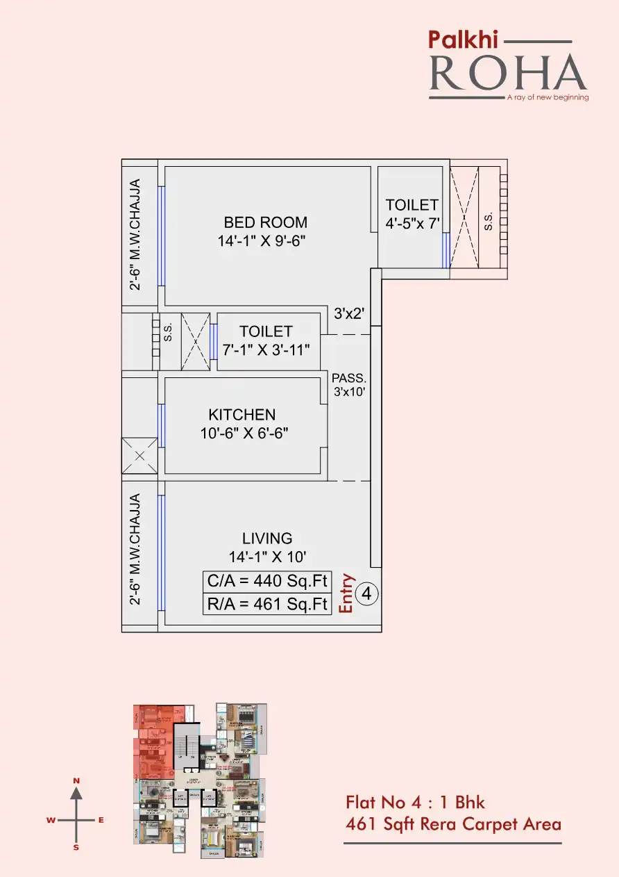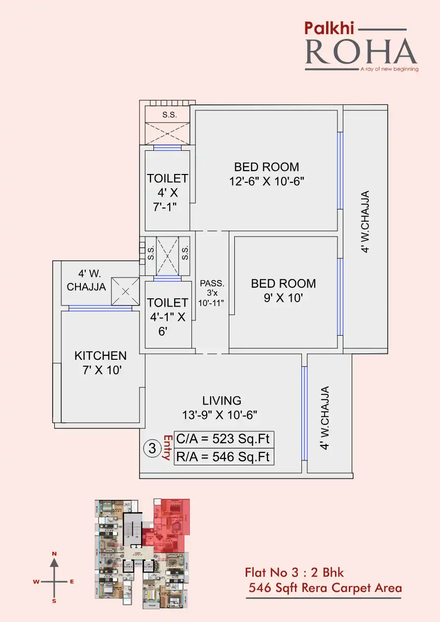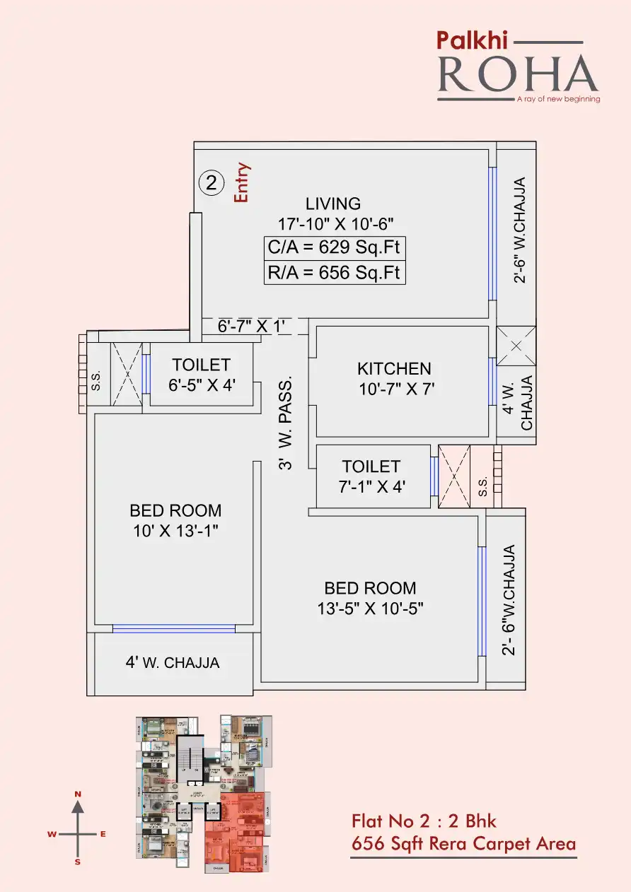 Palkhi Roha has been thoughtfully planned & designed to cater your perfect requirement of 1 & 2 bhk residential flats. 1 bhk configuration are 447 & 460 Sqft rera carpet area, & 2 BHK are 621 & 663 Sqft rera carpet area.