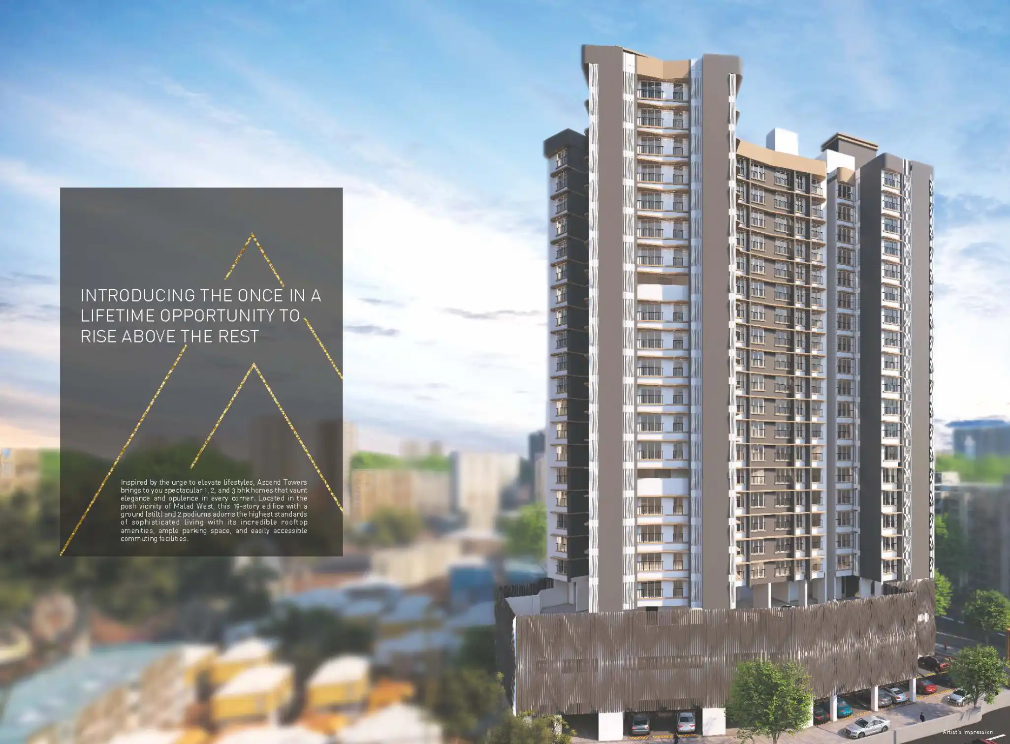 Inspired by the urge to elevate Lifestyles, Ascend Towers brings to you spectacular 1, 2, and 3 bhk homes that vaunt elegance and opulence in every corner. Located in the posh vicinity of Malad West, this 19-story edifice with a ground (stilt) and 2 ...