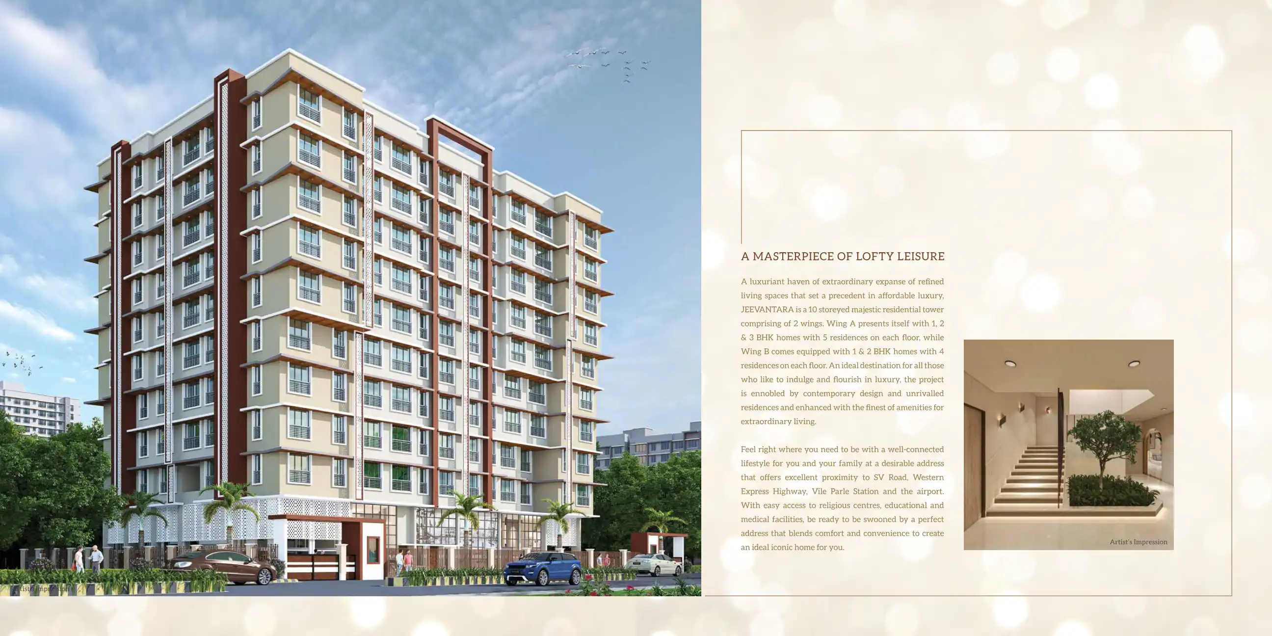 JEEVAN TARA is a 10 storeyed majestic residential tower comprising of 2 wings. Wing A presents itself with 1, 2 & 3 BHK homes with 5 residences on each floor, while Wing B comes equipped with 1 & 2 BHK homes with 4 residences on each floor.