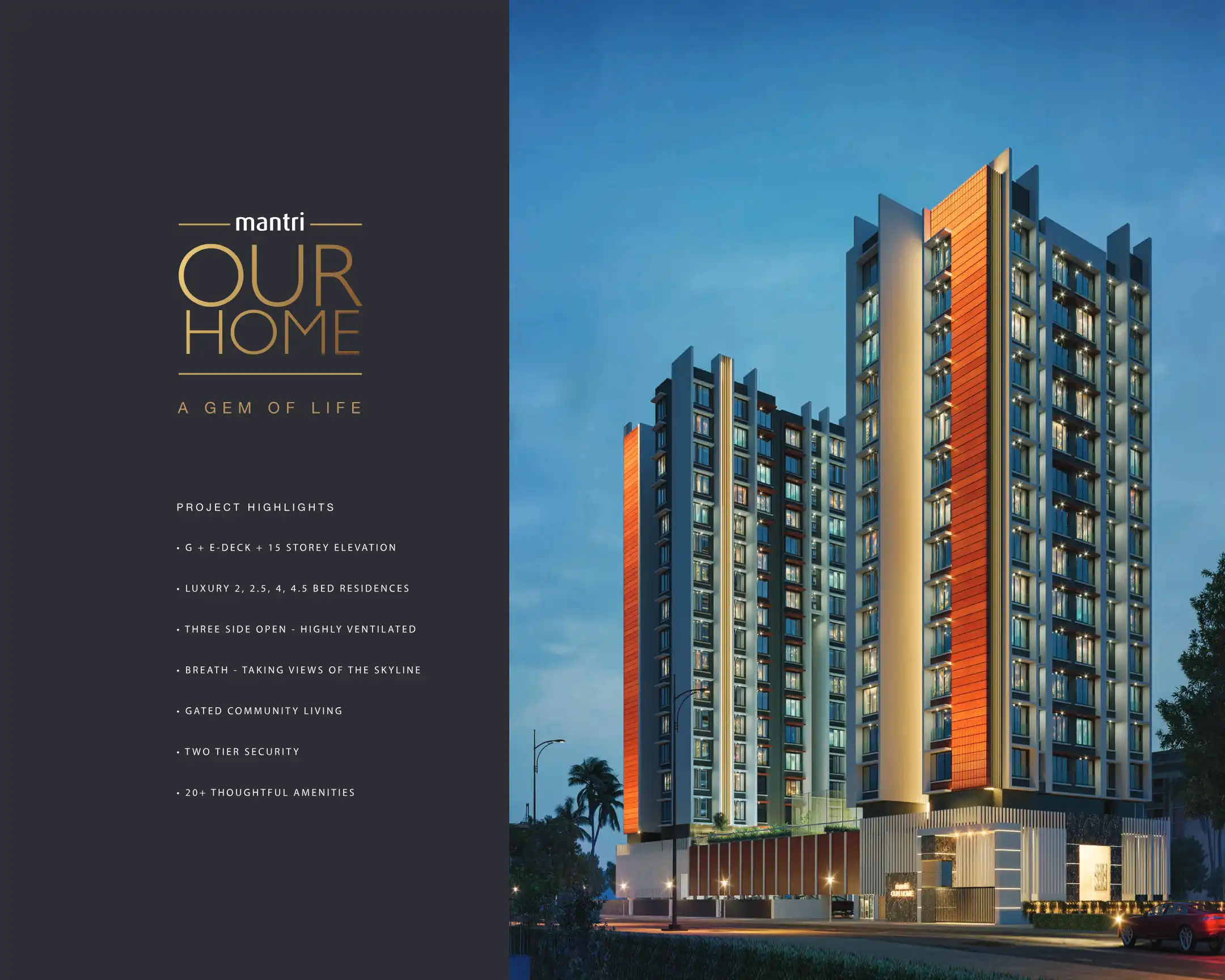 Mantri Our Home is a residential project located in Andheri Inner Circle, Mumbai. It offers luxury 2, 2.5, 4, 4.5 BED residences with a variety of amenities.