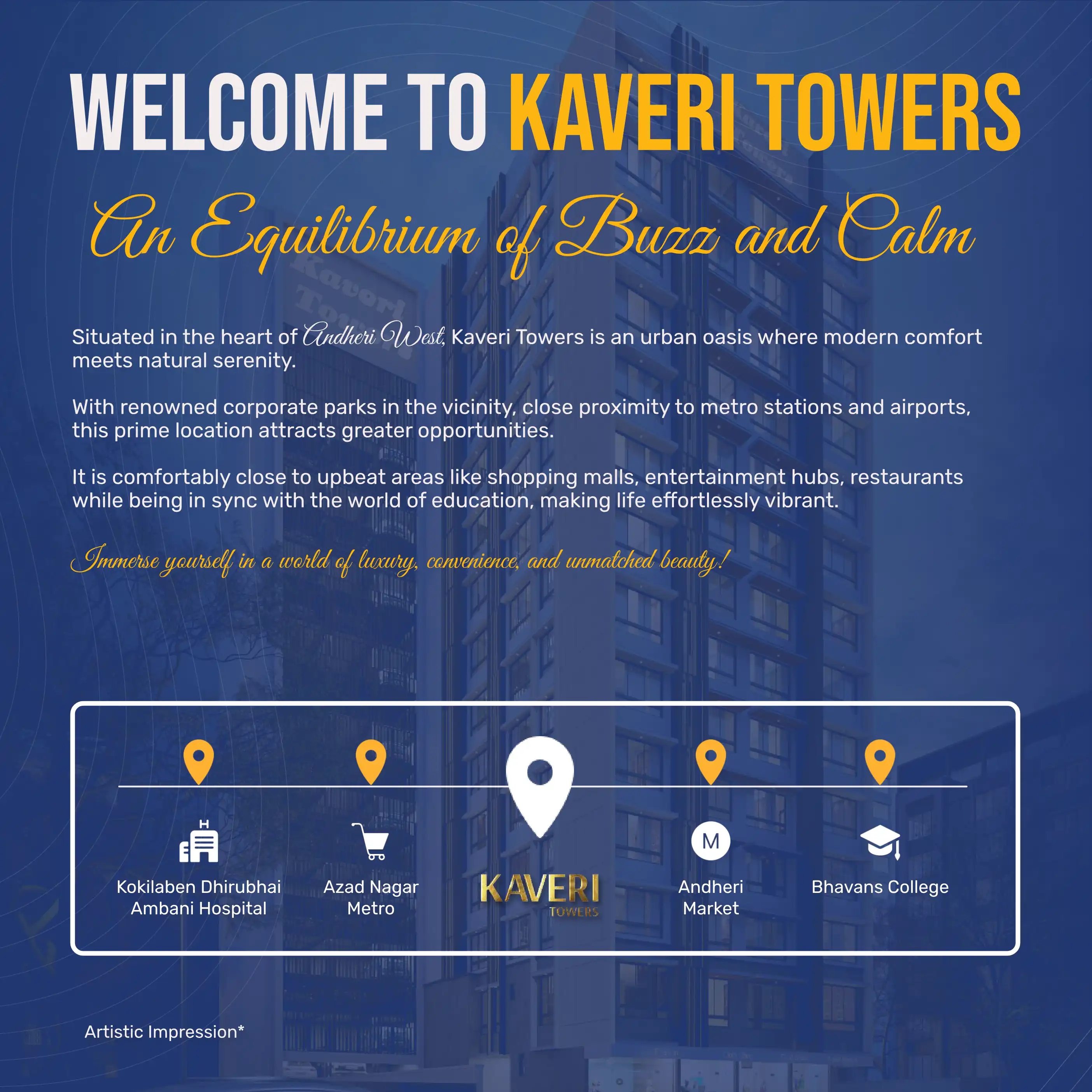 Kaveri Towers is an urban oasis where modern comfort meets natural serenity. It is close to upbeat areas like shopping malls, entertainment hubs, restaurants while being in sync with the world of education, making life effortlessly vibrant.