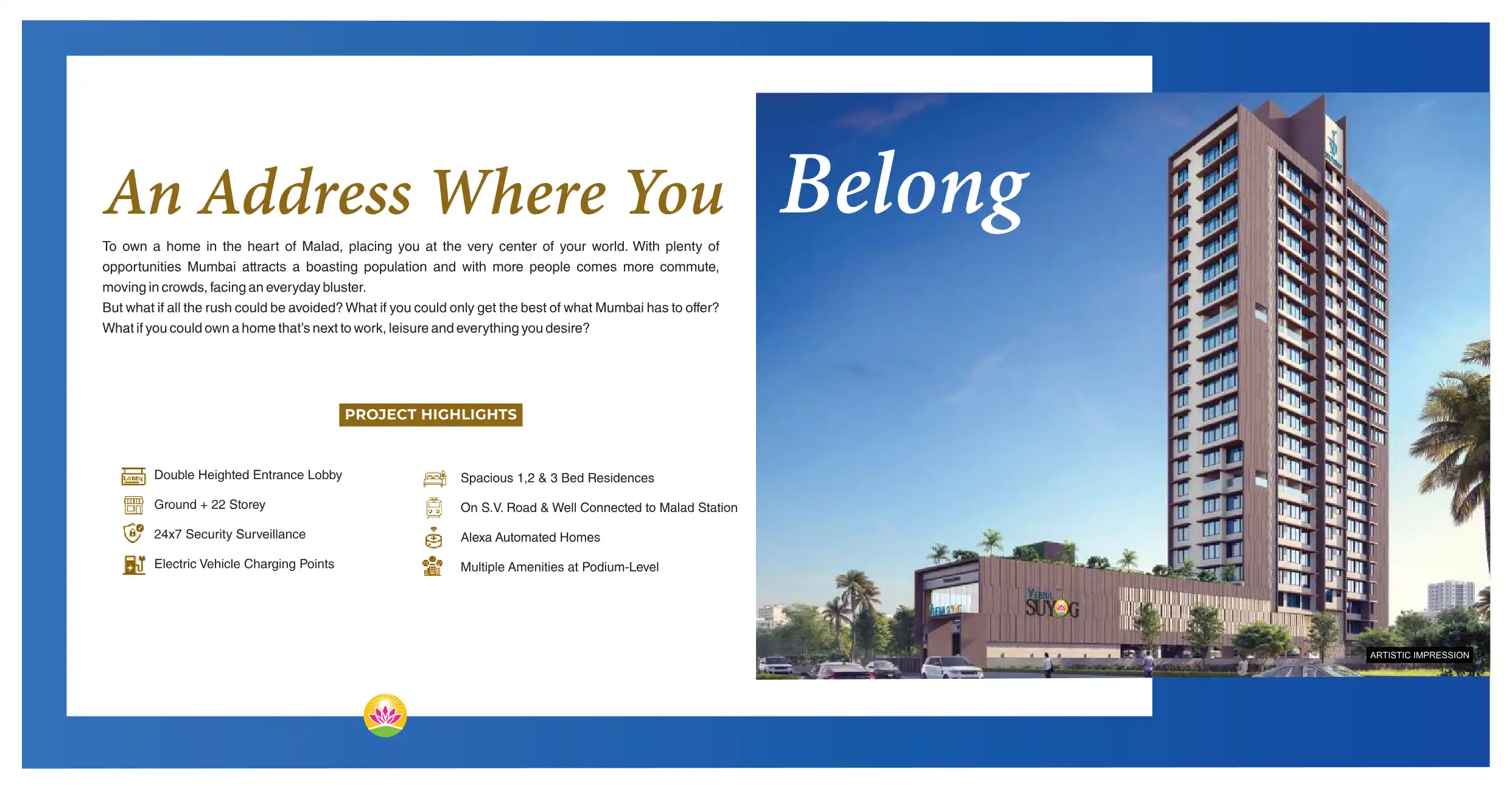 To own a home in the heart of Malad, placing you at the very center of your world. With plenty of opportunities Mumbai attracts a boasting population and with more people comes more commute, moving in crowds, facing an everyday bluster.