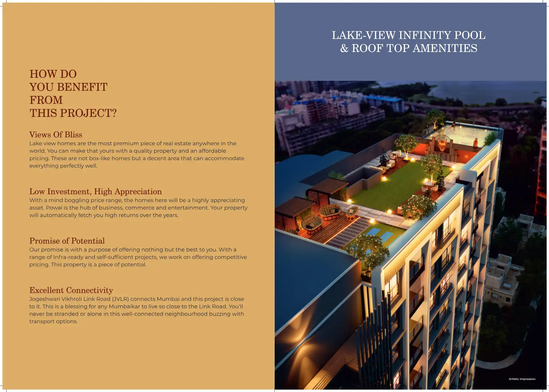 Powai boasts excellent connectivity to various parts of Mumbai. It is strategically located near major arterial roads like the Eastern Express Highway and the Western Express Highway, facilitating easy access. The upcoming Metro Line 6 (Swami Samarth Nagar-Jogeshwari-Vikhroli-Kanjurmarg) is set to further enhance its public transport network, connecting it efficiently to other business hubs and residential areas across the city.
