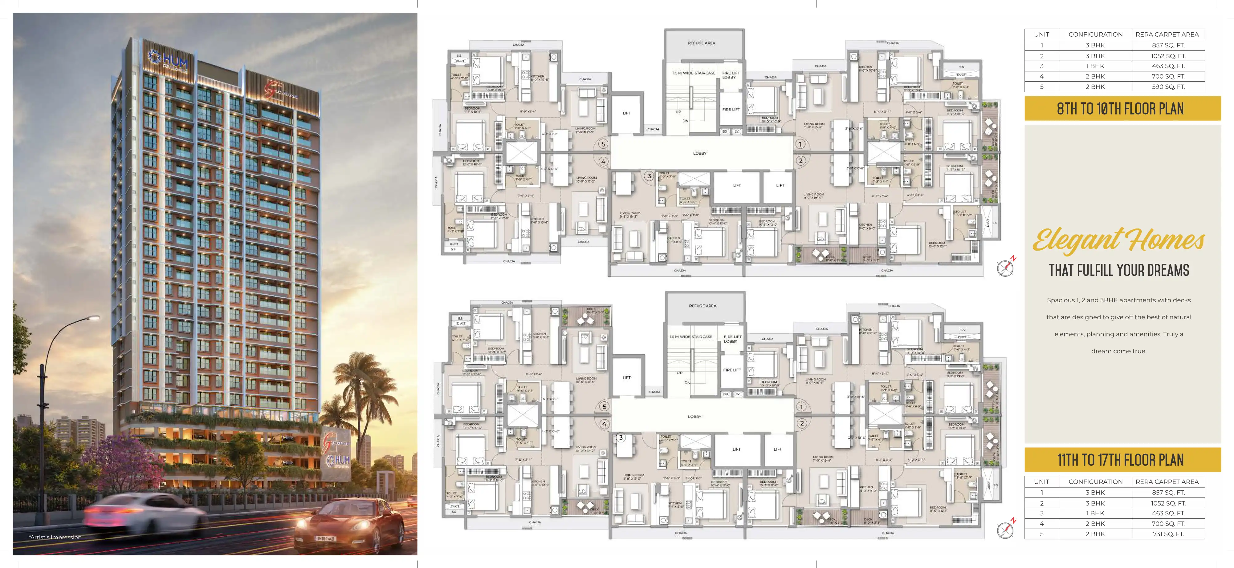 Elegant Homes THAT FULFILL YOUR DREAMS Spacious 1, 2 and 3BHK apartments with decks that are designed to give off the best of natural elements, planning and amenities. Truly a dream come true.