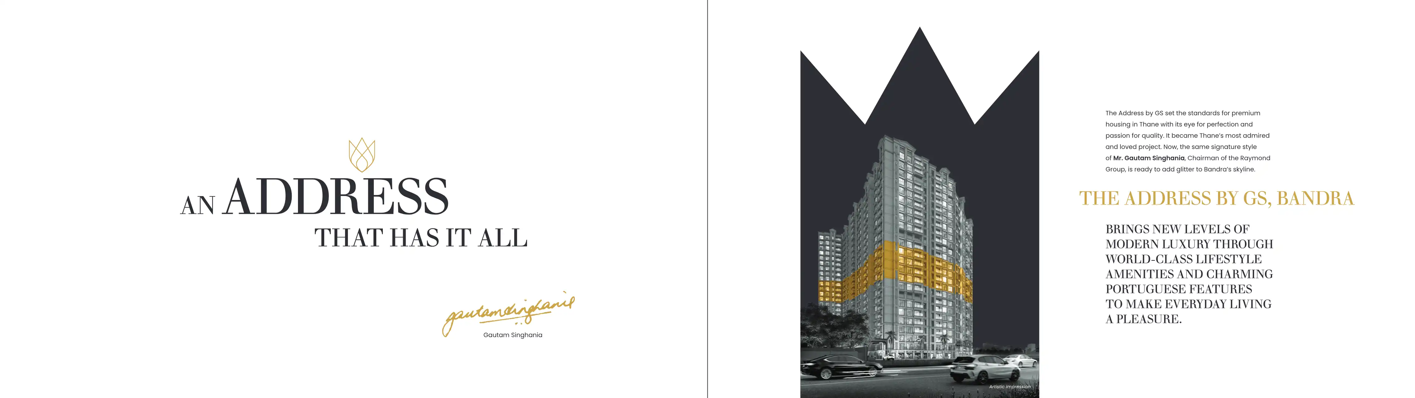 THE ADDRESS BY GS, BANDRA BRINGS NEW LEVELS OF MODERN LUXURY THROUGH WORLD-CLASS LIFESTYLE AMENITIES AND CHARMING PORTUGUESE FEATURES TO MAKE EVERYDAY LIVING A PLEASURE.