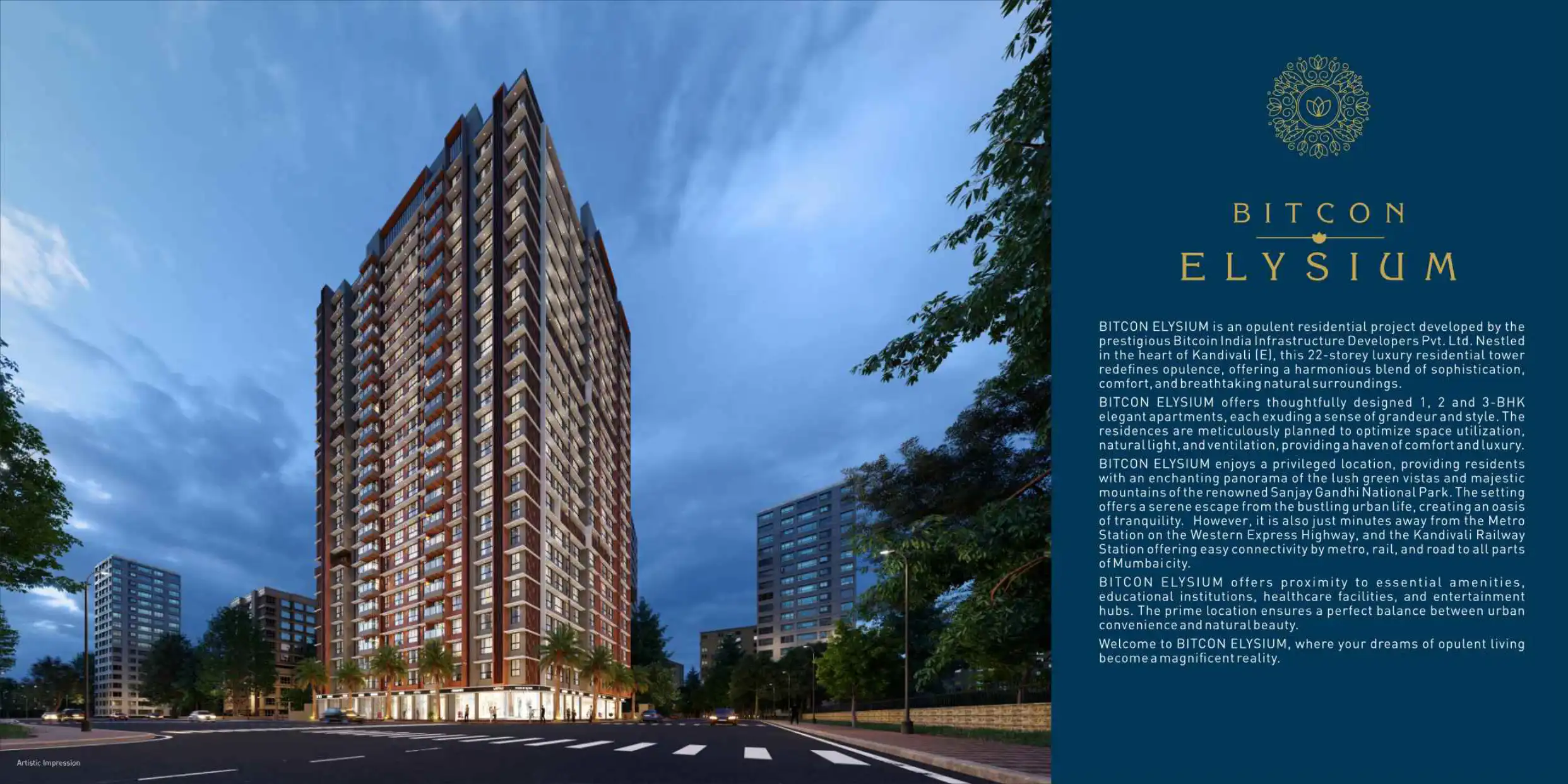 BITCON ELYSIUM is an opulent residential project developed by the prestigious Bitcoin India Infrastructure Developers Pvt. Ltd. Nestled in the heart of Kandivali (E), this 22-storey luxury residential tower redefines opulence, offering a harmonious b...