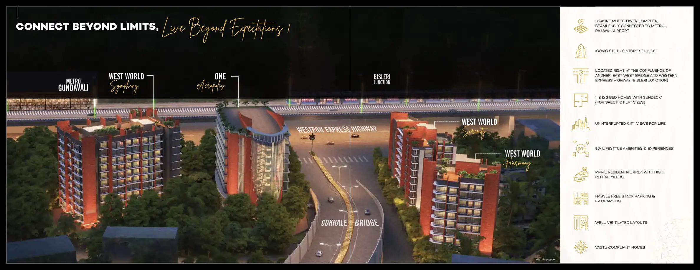 Chakala boasts robust connectivity with the Western Express Highway and Andheri-Kurla Road. It is well-served by the Mumbai Metro, with stations like Gundavali Metro Station and Western Express Highway Metro Station nearby. Andheri Railway Station, a major suburban rail hub, is also easily accessible, enhancing commute options.