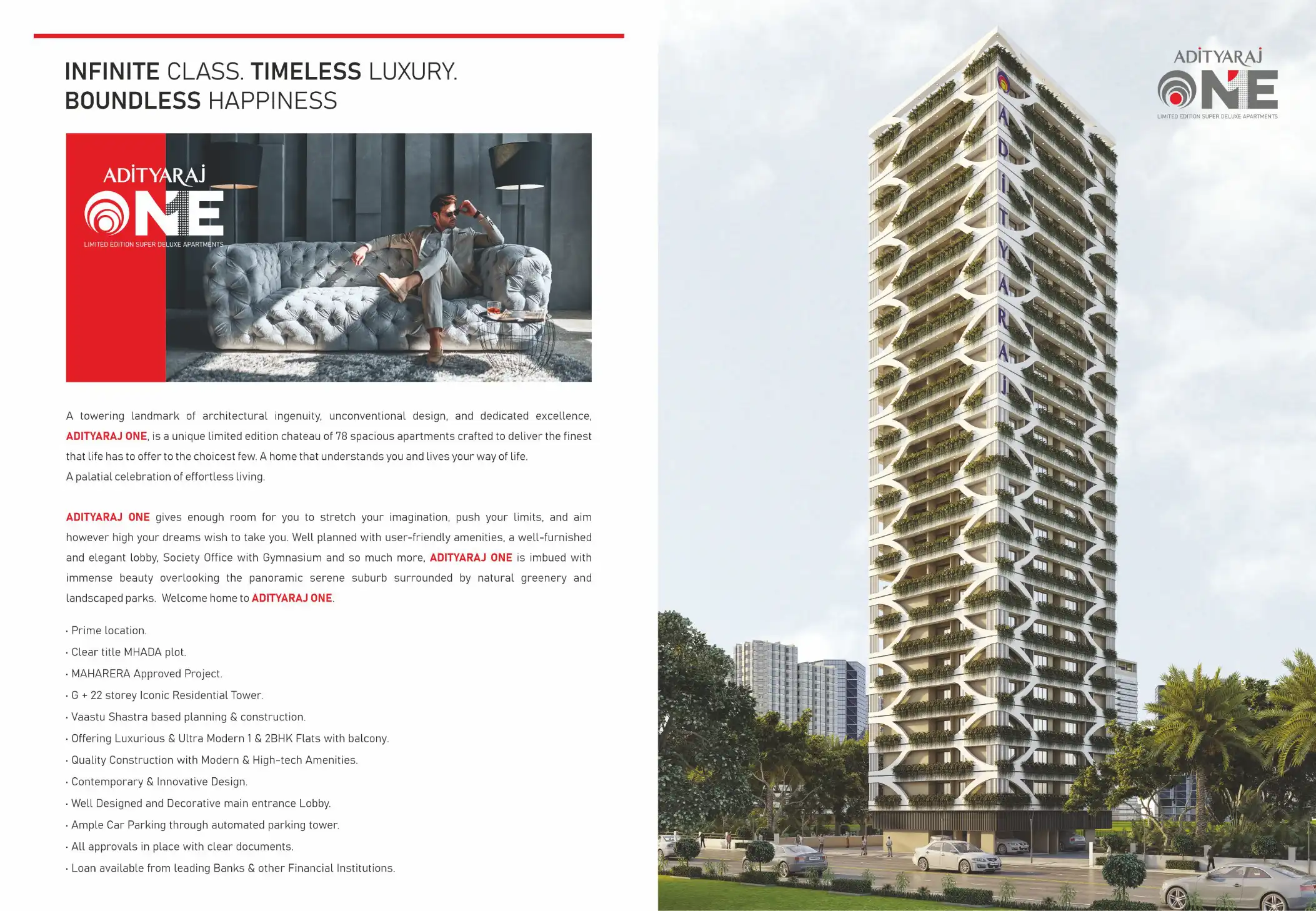 ADITYARAJ ONE gives enough room for you to stretch your imagination, push your limits, and aim however high your dreams wish to take you. Well planned with user-friendly amenities, a well-furnished and elegant lobby, Society Office with Gymnasium and...