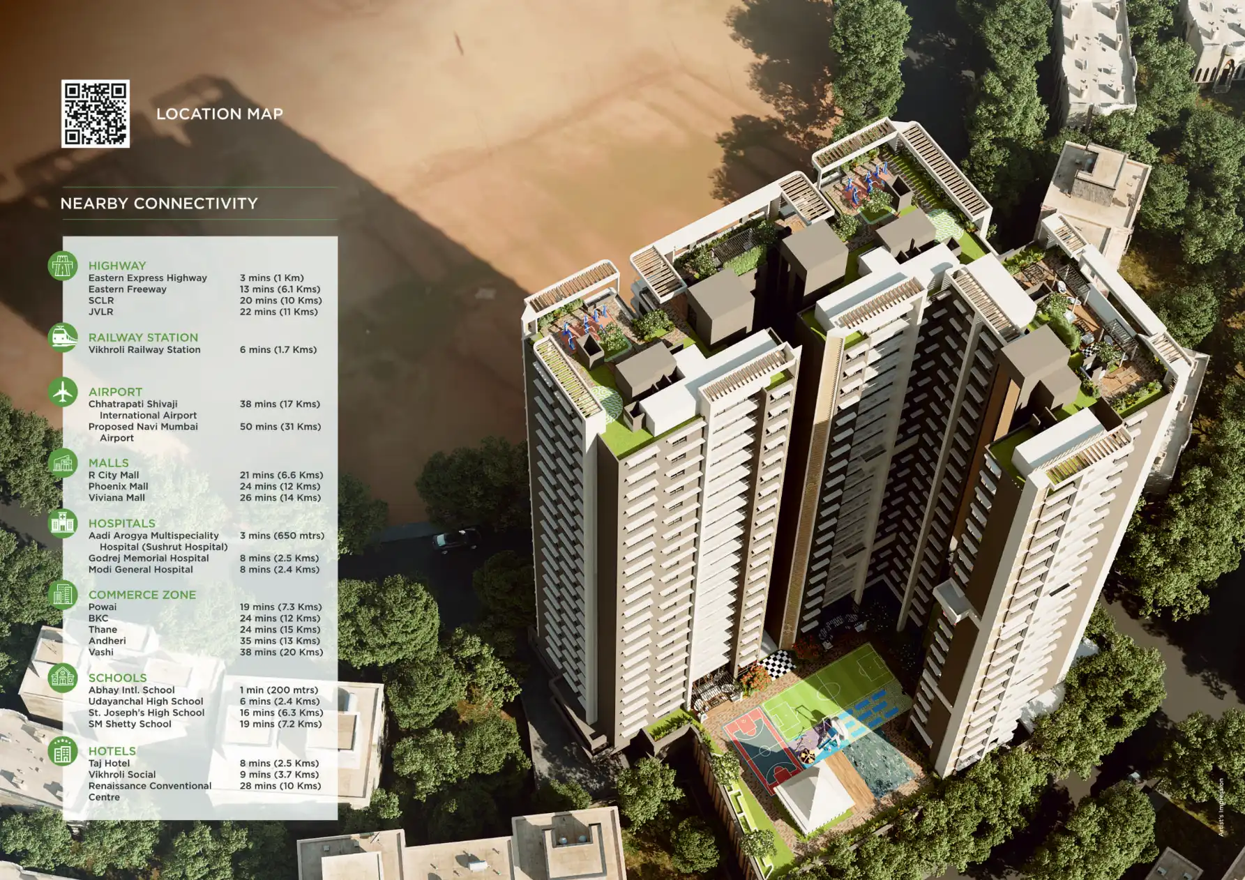 Vikhroli East offers a balanced lifestyle with a mix of residential comfort and urban conveniences. It features reputable educational institutions like St. Joseph's High School, healthcare facilities such as Godrej Memorial Hospital, and various recreational spaces. The presence of Godrej IT Park also makes it a hub for professionals.