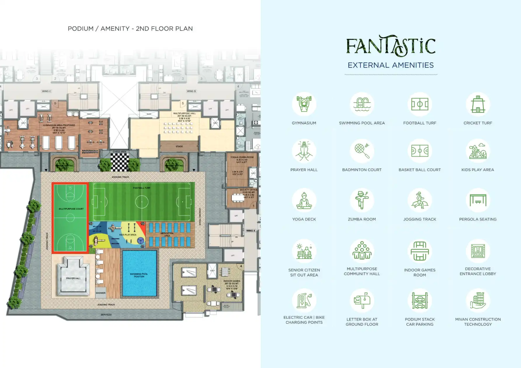 Fantastic Apartments in Vikhroli East offers 1, 1.5 & 2 BHK apartments with external amenities like Gymnasium, Swimming Pool, Football Turf, Cricket Turf, Yoga Deck, Zumba Room, Jogging Track etc.