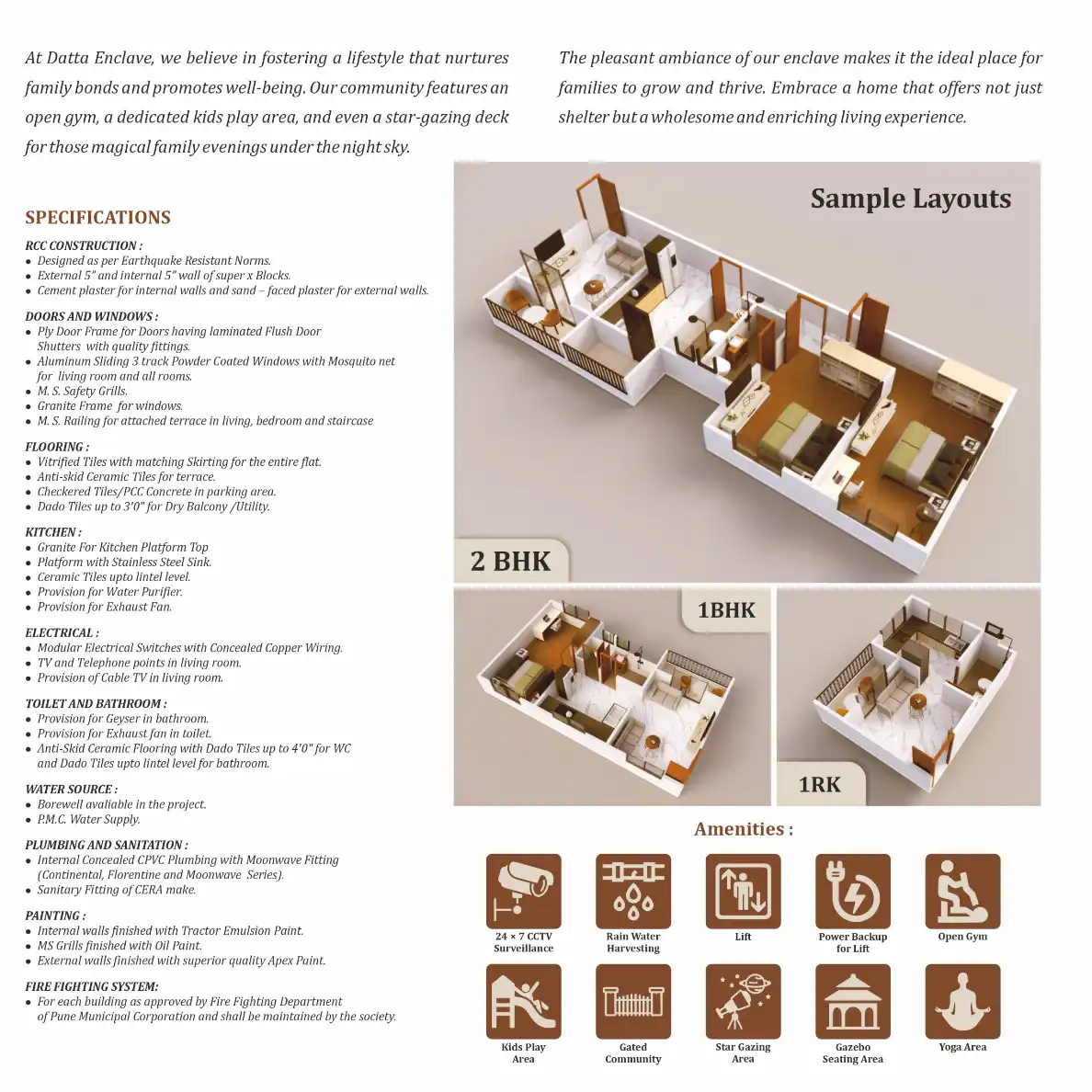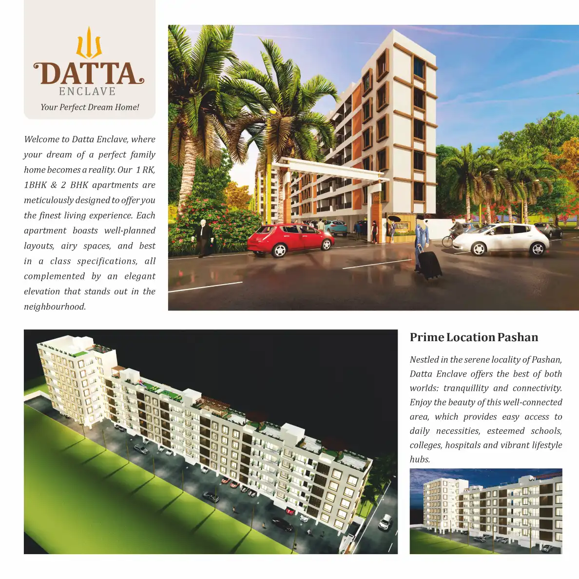 Welcome to Datta Enclave, where your dream of a perfect family home becomes a reality. Our 1 RK, 1BHK & 2 BHK apartments are meticulously designed to offer you the finest living experience. Each apartment boasts well-planned layouts, airy spaces, and...