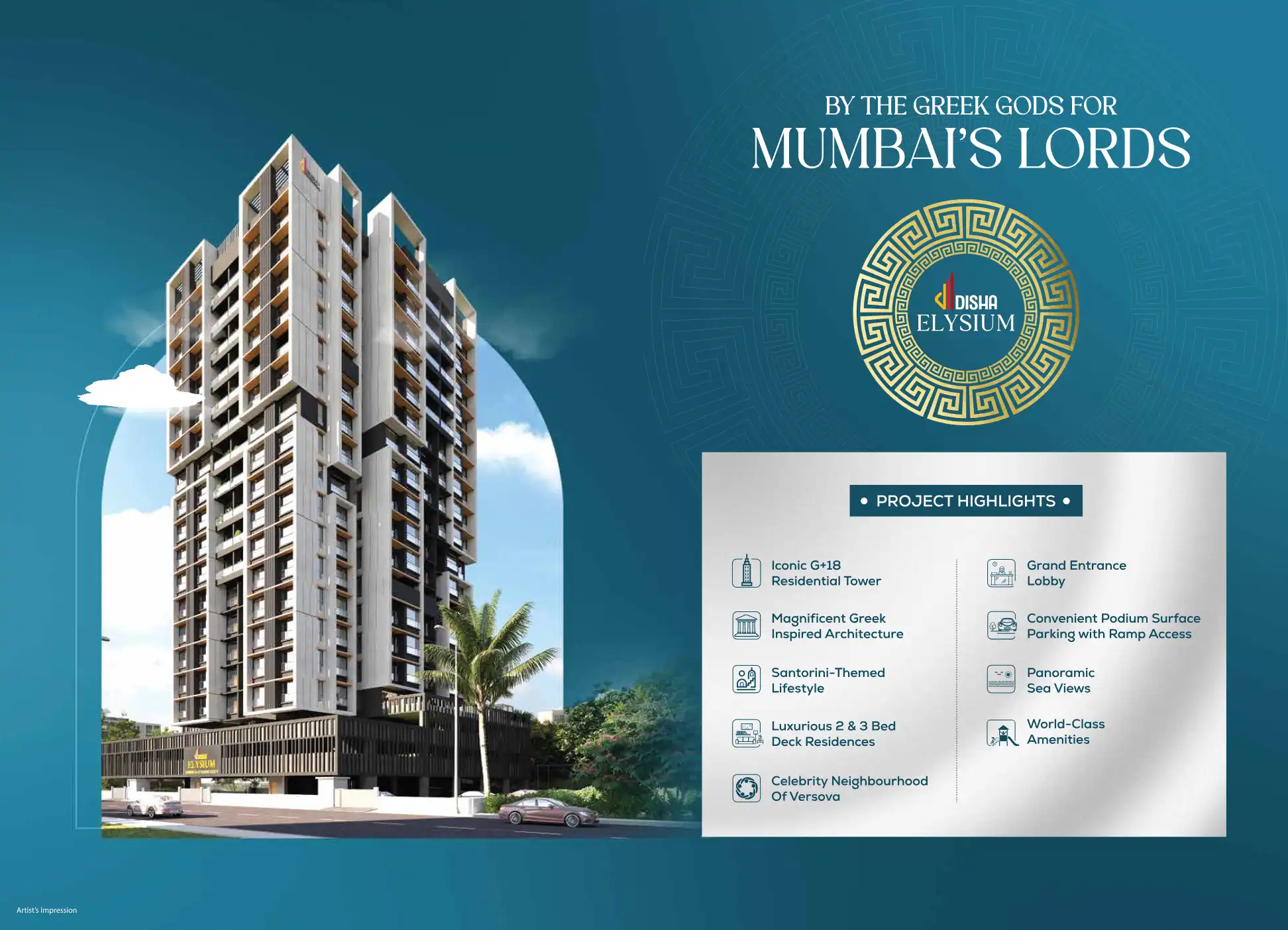 Disha Elysium is a residential project offering luxurious 2 & 3 Bed Deck Residences with world-class amenities. Inspired by Santorini's beauty, it features Greek-inspired architecture, panoramic sea views, and a celebrity neighborhood in Versova.