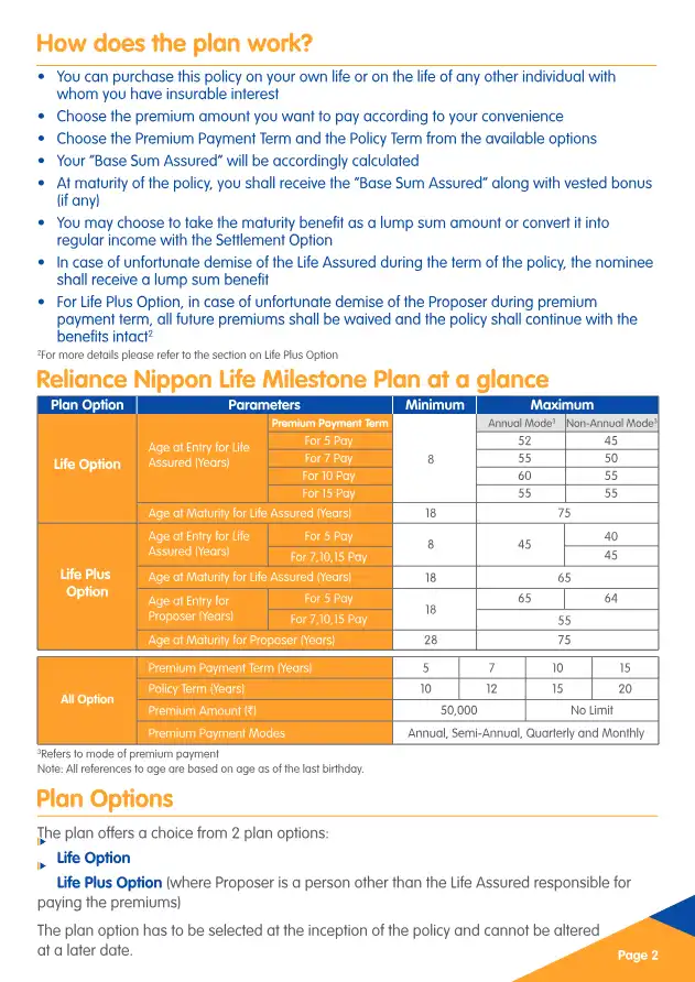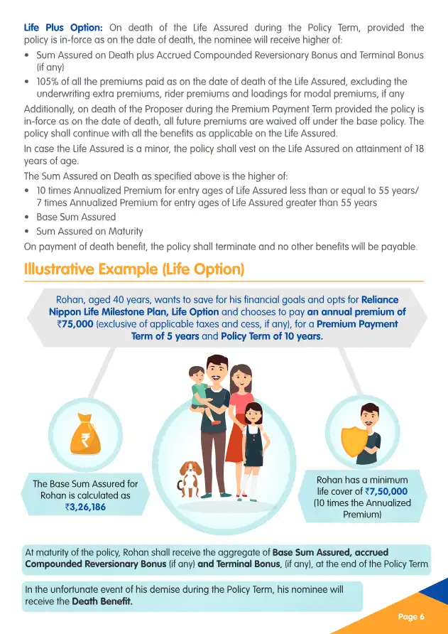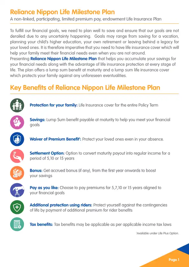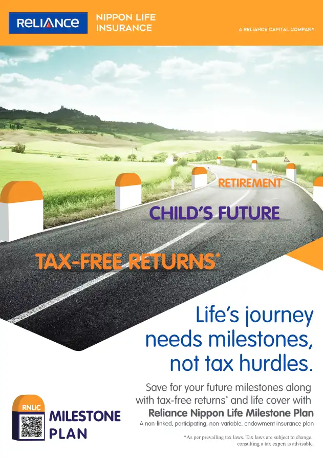 Presenting Reliance Nippon Life Milestone Plan that helps you accumulate your savings for your financial needs along with the advantage of life insurance protection at every stage of life. The plan offers a lump sum benefit at maturity and a lump sum...