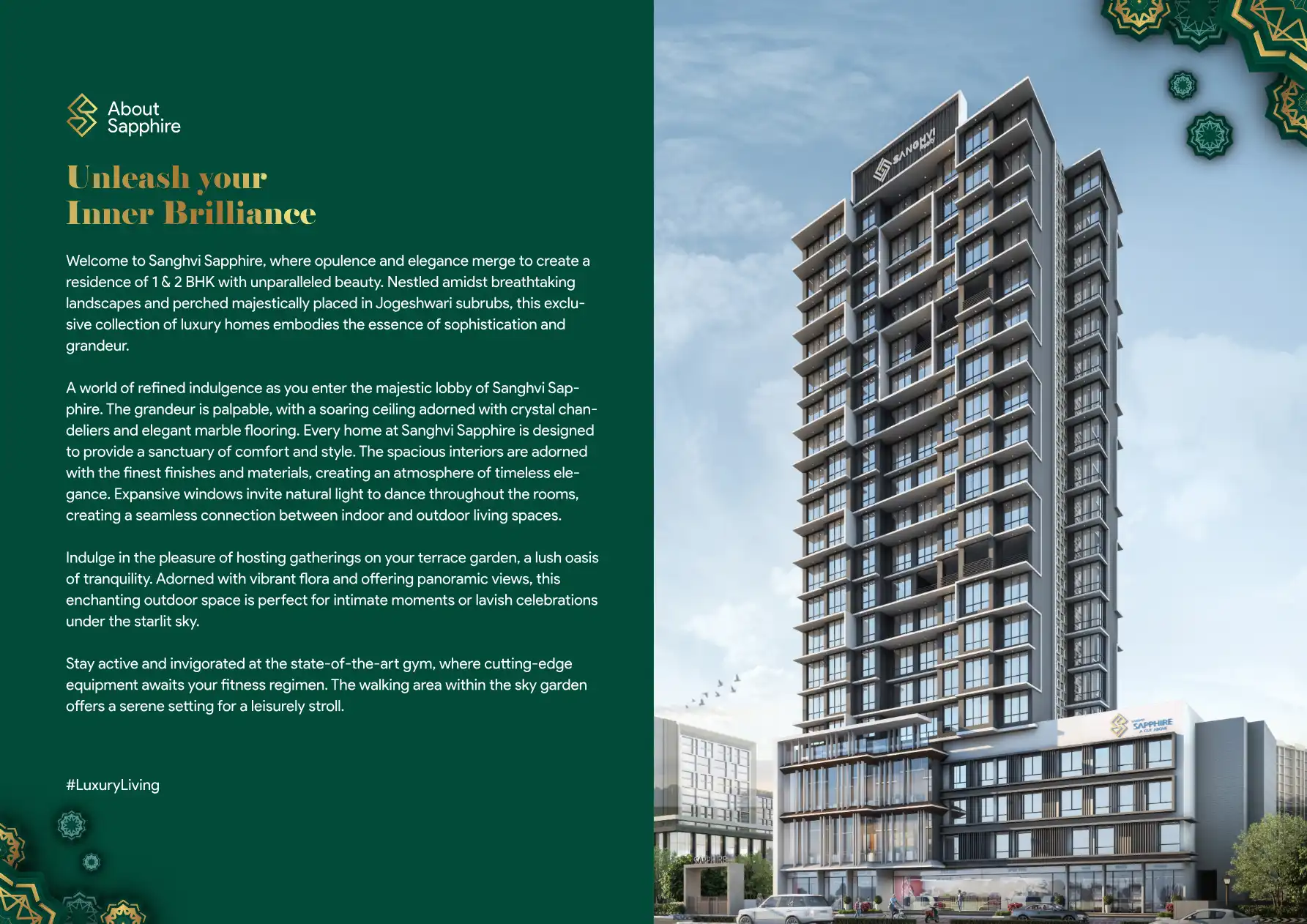 Welcome to Sanghvi Sapphire, where opulence and elegance merge to create a residence of 1 & 2 BHK with unparalleled beauty. Nestled amidst breathtaking landscapes and perched majestically placed in Jogeshwari subrubs, this exclu- sive collection of l...
