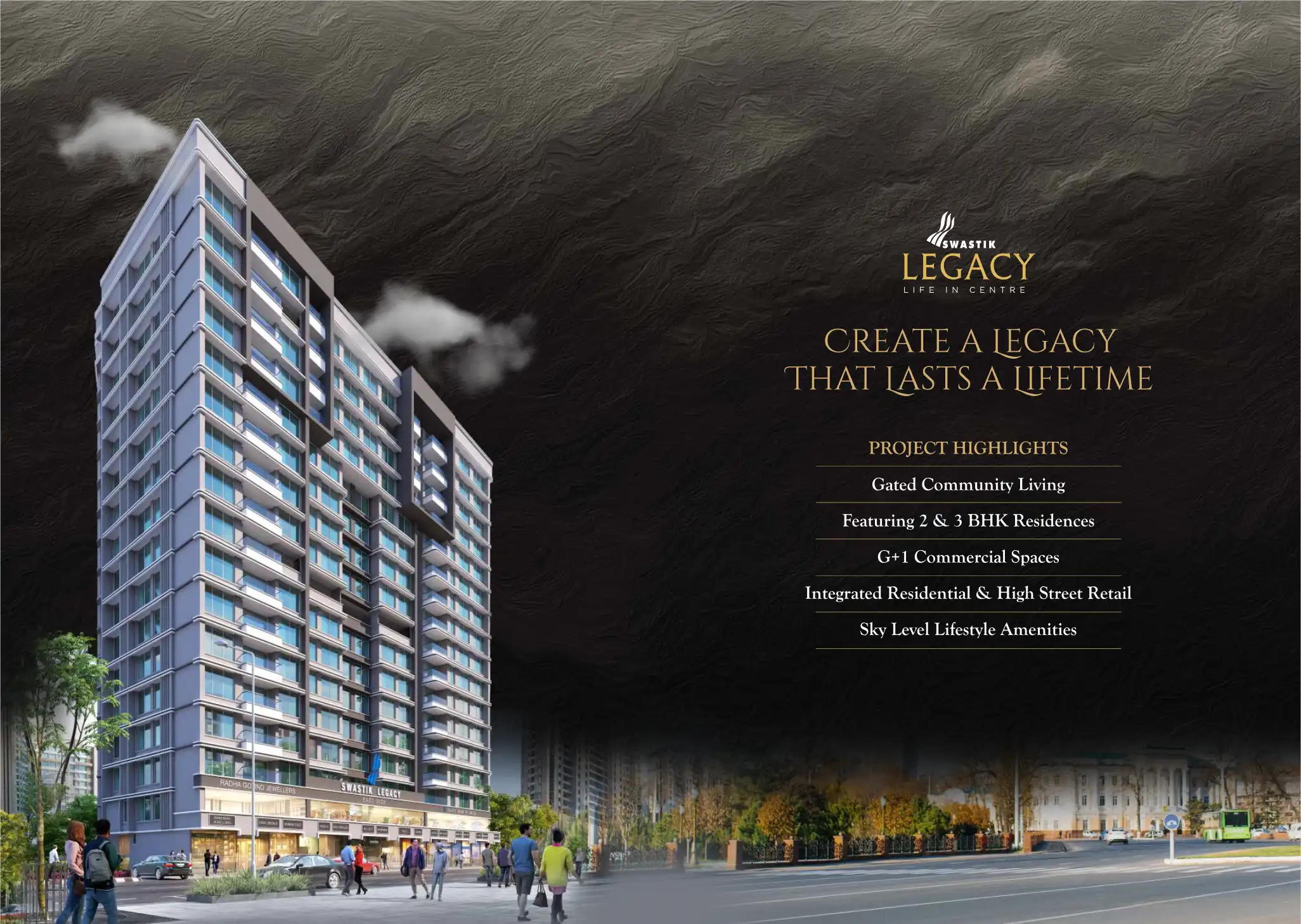 CREATE A LEGACY THAT LASTS A LIFETIME. Gated Community Living, Featuring 2 & 3 BHK Residences, G+1 Commercial Spaces, Integrated Residential & High Street Retail, Sky Level Lifestyle Amenities