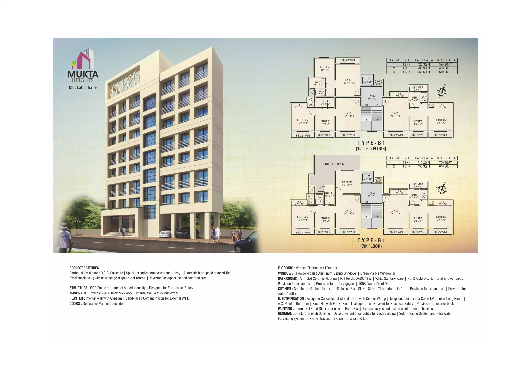Earthquake resistance R.C.C. Structure | Spacious and decorative entrance lobby | Automatic high speed branded lifts |Excellent planning with no wastage of space in all rooms | Invertor Backup for Lift and common area
