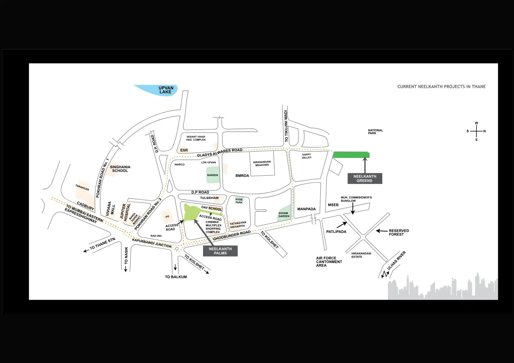 Thane West is a prominent locality in Thane, Maharashtra, part of the Mumbai Metropolitan Region (MMR). It boasts excellent connectivity via the Eastern Express Highway, Ghodbunder Road, and Thane railway station, linking it to Mumbai, Navi Mumbai, and other parts of Thane. The upcoming Metro Line 4 will further enhance its accessibility.